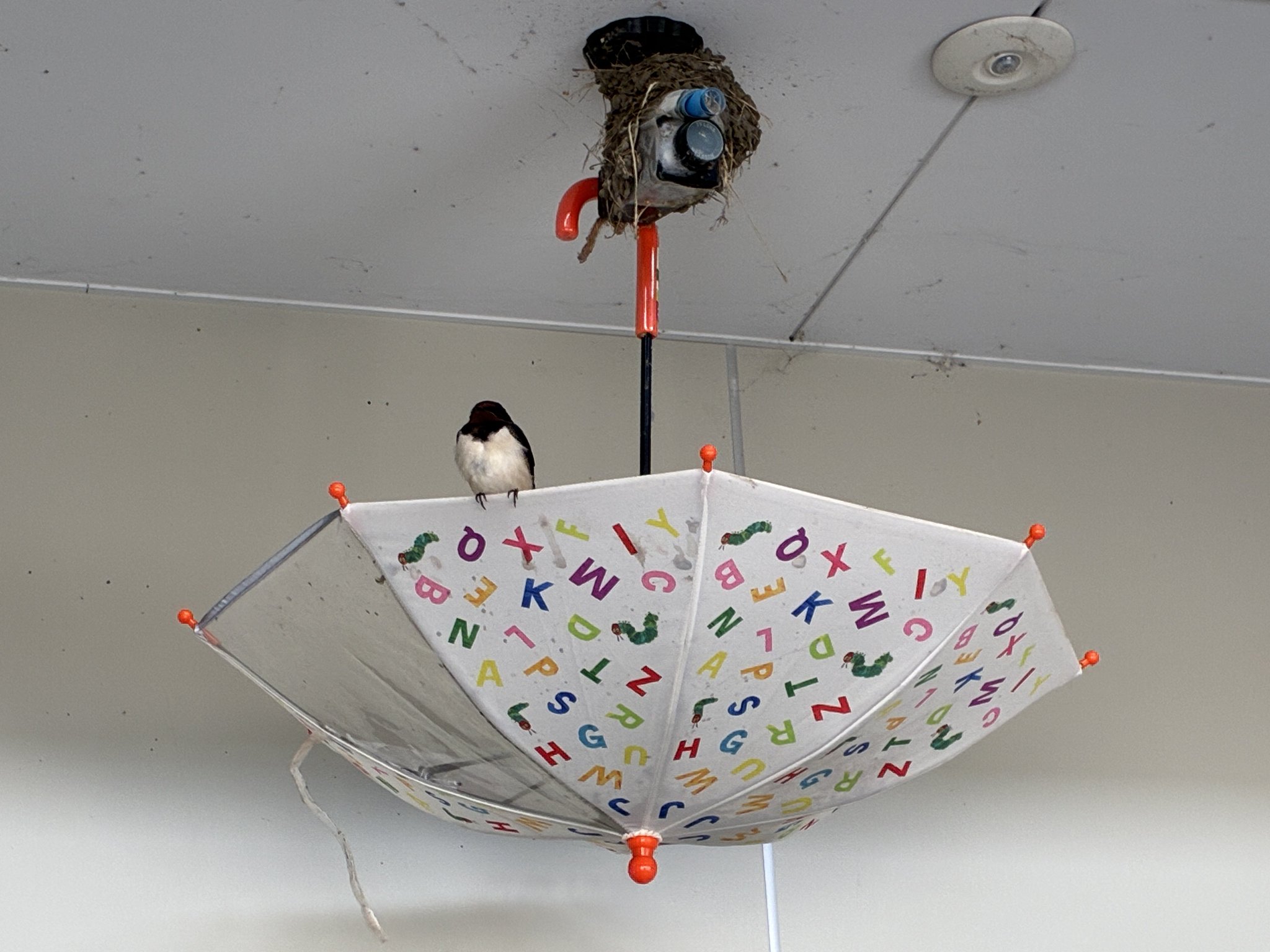 @kotori_jp @toriatamaxp ご家庭で余ってた(子どもの成長によりサイズアウトした)要らなくなった傘の再利用ですかね?かわいくて素敵。