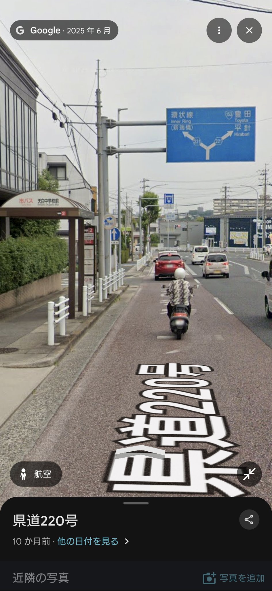 Googleマップのストビューで本来のバス停を特定。どうやら、ここから北方(写真の青看でいう『環状線』方面)に一時的に移設した模様。でも、名古屋市営バスはこういう場合は「臨時バス停」の標識を設置するはず。その場所が無かったのか? https://t.co/swx5zKzLjQ