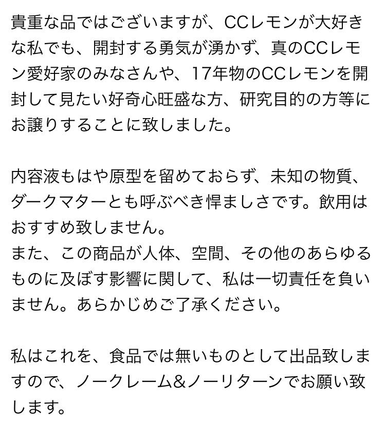 「17年放置したCCレモン」が大変なことにwwwwwwwww 2017/3/18 6:00 たべもの・のみもの・レシピ, 画像 スポンサードリンク [投稿元ツイート:病葉さん] [投稿元ツイート:病葉さん] [投稿元ツイート:病葉さん] どうしてこうなった・・・。成分を解析してほしいw