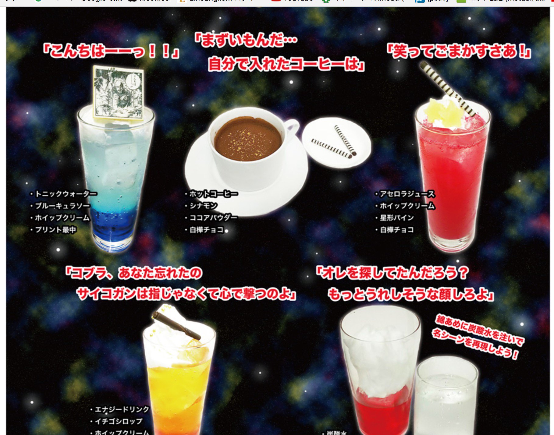 乙女ロードにあるカフェの「コブラ」コラボメニューがすっごく注文しづらいwww 2017/11/4 12:00 たべもの・のみもの・レシピ, 画像 0 スポンサードリンク [投稿元ツイート:角さん] [投稿元ツイート:角さん] [投稿元ツイート:角さん] [投稿元ツイート:角さん] [投稿元ツイート:角さん] プリンセスカフェ池袋 | プリンセスカフェ | 人気アニメコラボカフェ 凝ったメニュー名もコラボカフェの名物。7日までだそうですよ。