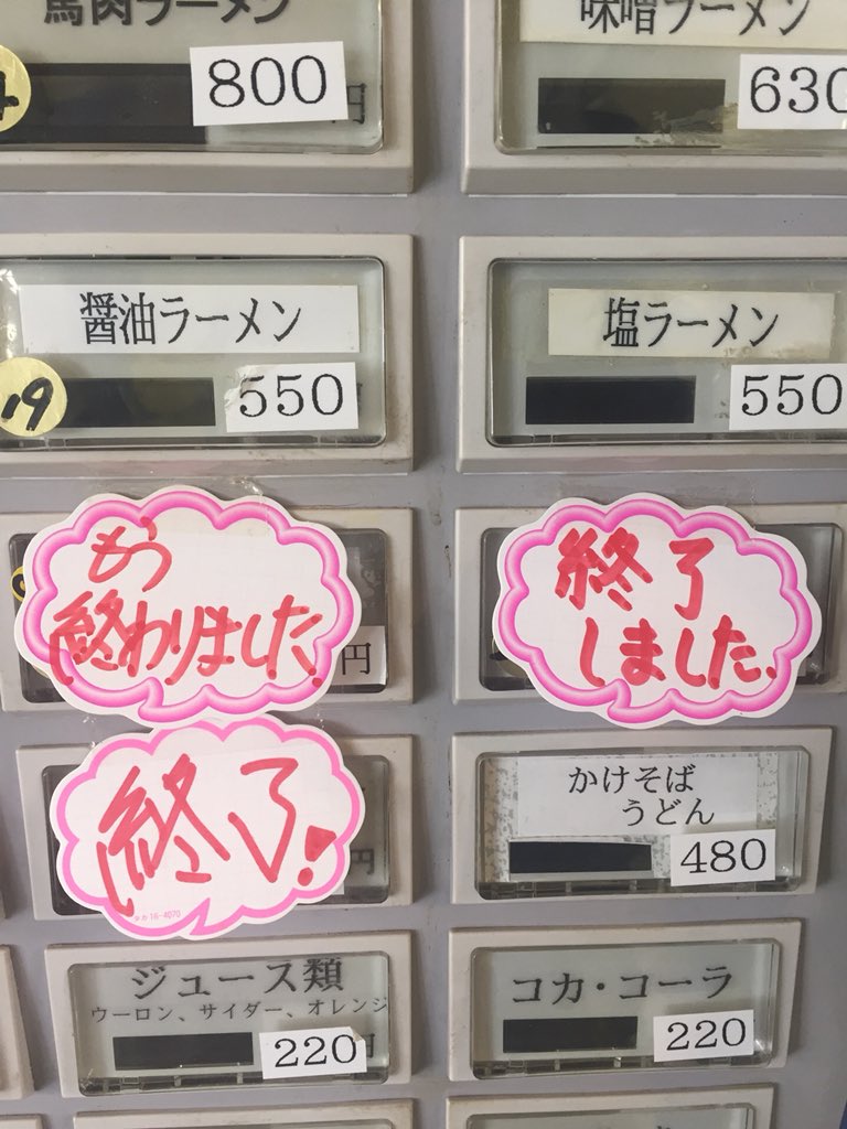 食券販売機の「販売終了」で塞がれたボタンを興味本位でめくってみたら…やられたwww 2018/5/9 19:00 その他, たべもの・のみもの・レシピ, 画像 0 スポンサードリンク [投稿元ツイート:U-zhaan(ユザーン)さん] [投稿元ツイート:U-zhaan(ユザーン)さん] やるよね~。