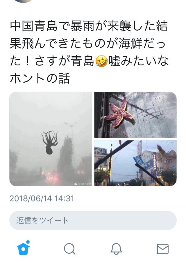 中国青島で暴雨が来襲した結果飛んできたものが海鮮だった!さすが青島🤣嘘みたいなホントの話 https://t.co/xUPPR9cEVP