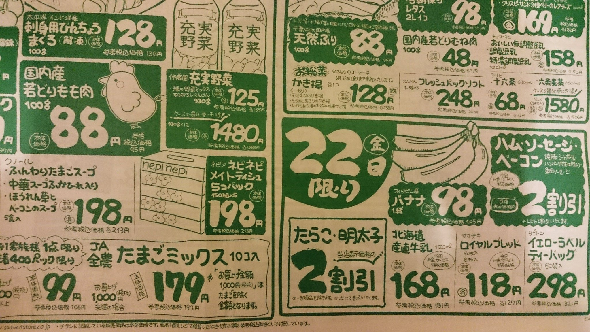売り出し期間は今日22日までですが、チラシはアーカイブして欲しいですねぇ。。