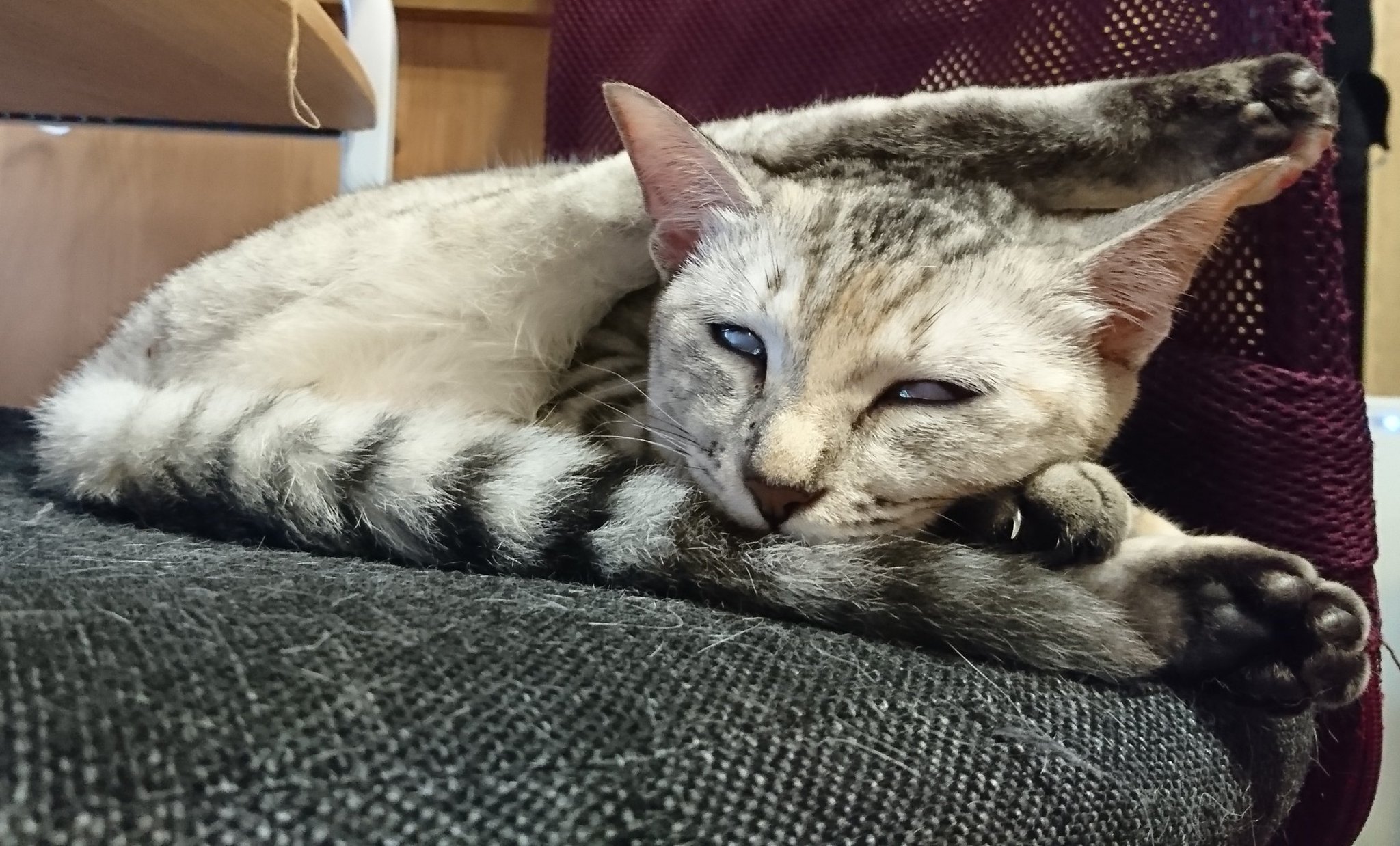@louis_a_gogo はじめまして〜。可愛い猫さん!😻逆に寝ていると思ったら 起きてる時もありますよね、寝てるか起きてるか分からん!🤣うちは女達が良く開いてます。 https://t.co/SXak5vJji6
