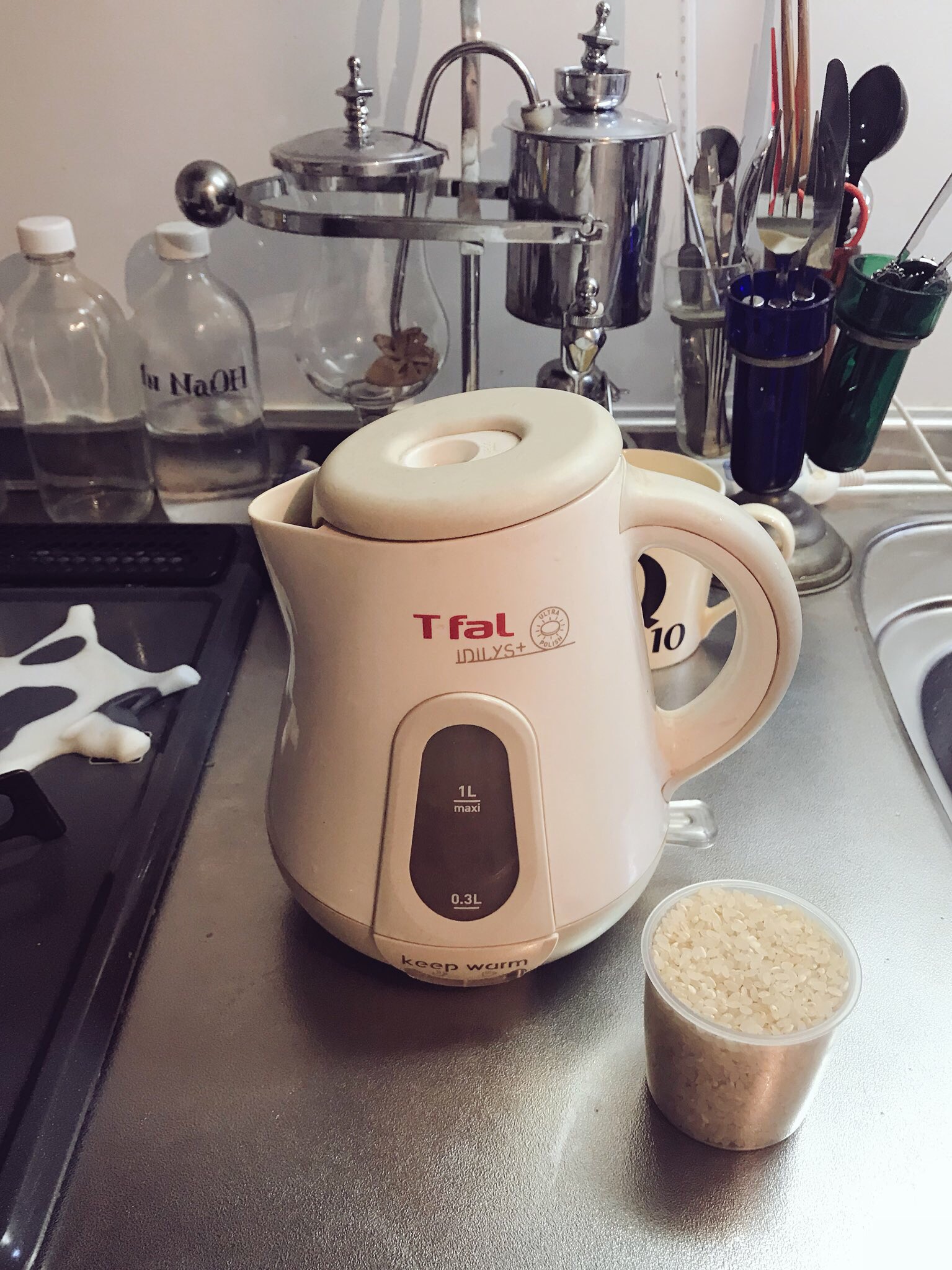 米炊いた記録の写真。米が主食の我々日本人にとって常時炊きたての白米が食べられることは大変重要である。よって電気ケトルで米は炊けるのかという試行をすることにした。米:水=2:3(体積比)。30分程度で炊けることがわかり、国外滞在先でも炊きたての白米が食べられるという有益な結果が得られた。 https://t.co/kJ2PXfpn1I