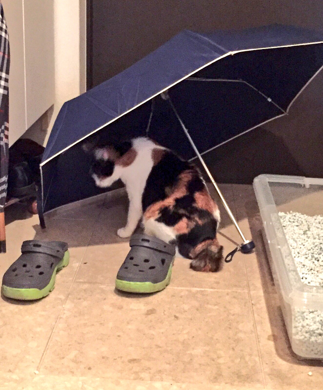 「玄関で傘干してたら…!! 可愛すぎかー!😍」 →猫傘写真祭りに発展w