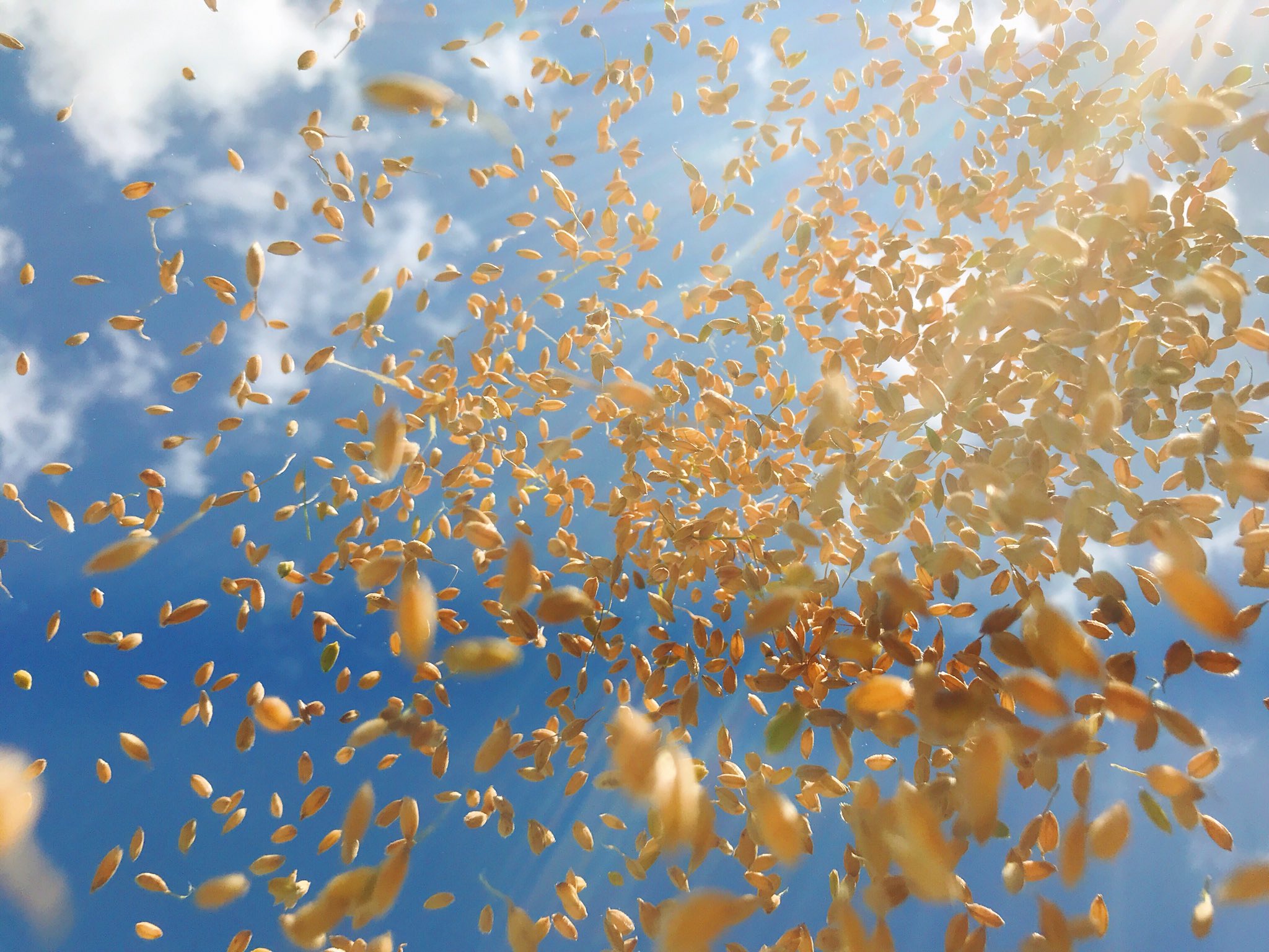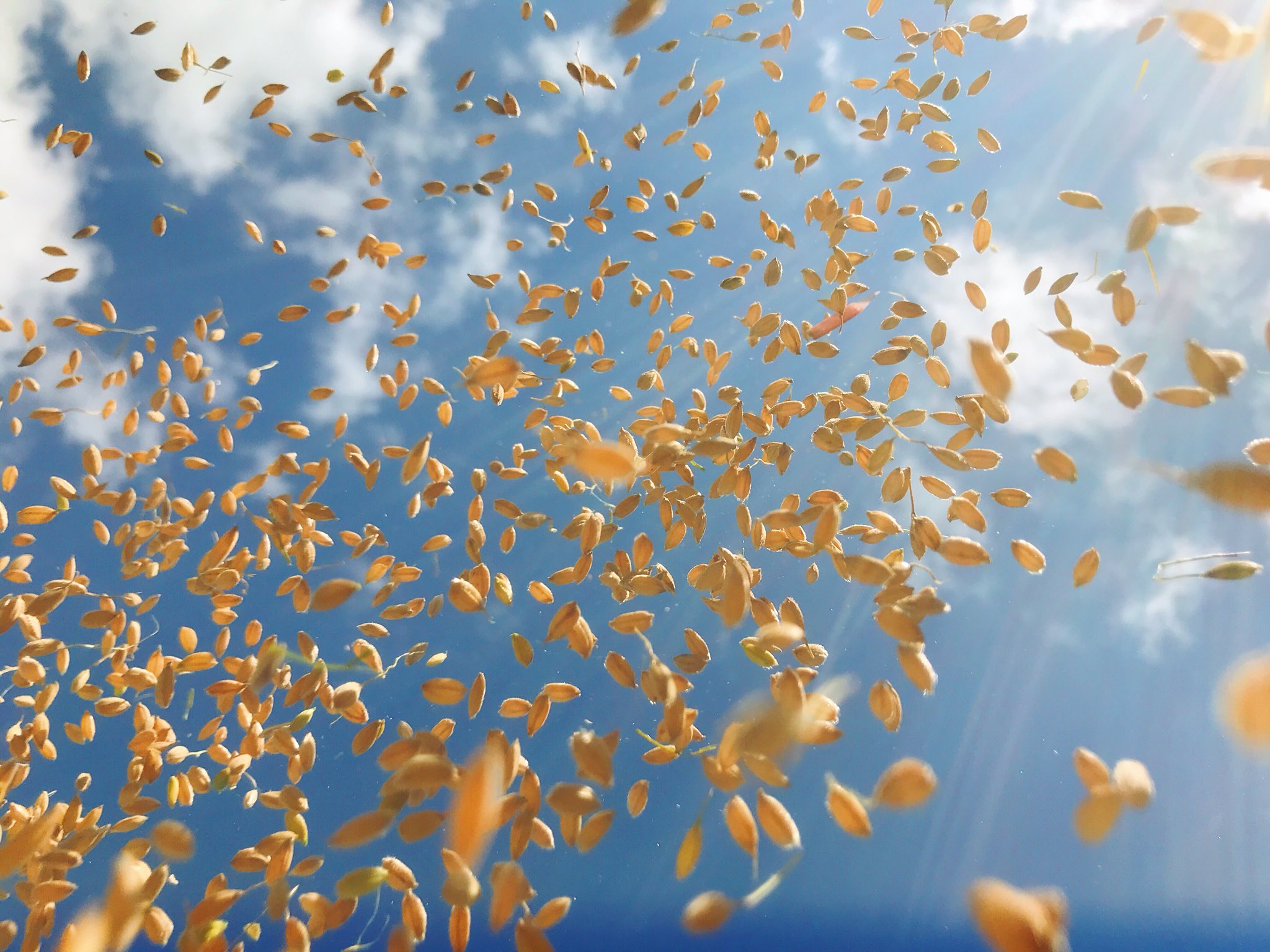 @1Shuo はじめまして。なんて美しい収穫の写真!一気に実家周辺の田んぼ地帯が蘇りました。籾のサラサラ降ってきて遊びたくなるけど背中に入るとチクチクしてね、懐かしいです。お米の収穫、大変かと思いますが、どうぞお体大切に、無理なさらないよう頑張ってください!