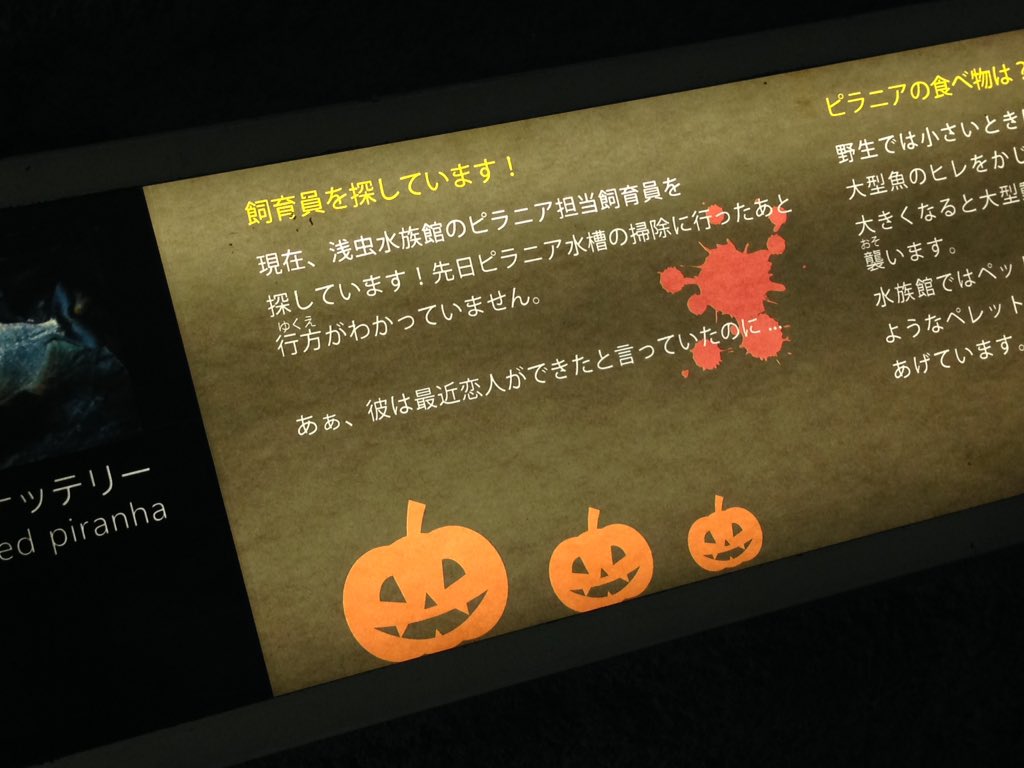 @hoiuaerhg122 今月は毎週土曜に開館時間延長して夜の水族館 ハロウィンナイトというイベントがあるんですよ。明日から始まるそのハロウィンイベントに合わせてディスプレイもハロウィン仕様になってるようです。
