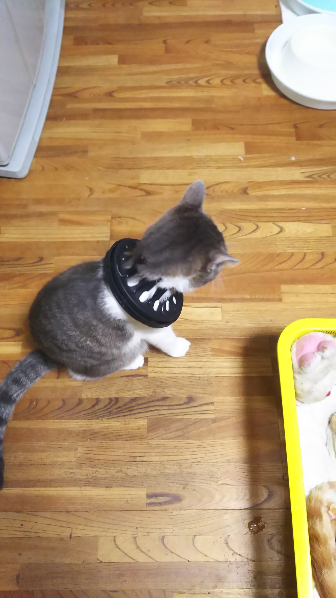 @rajikoraji こちらが今年流行のエリザベスカラーとなります。