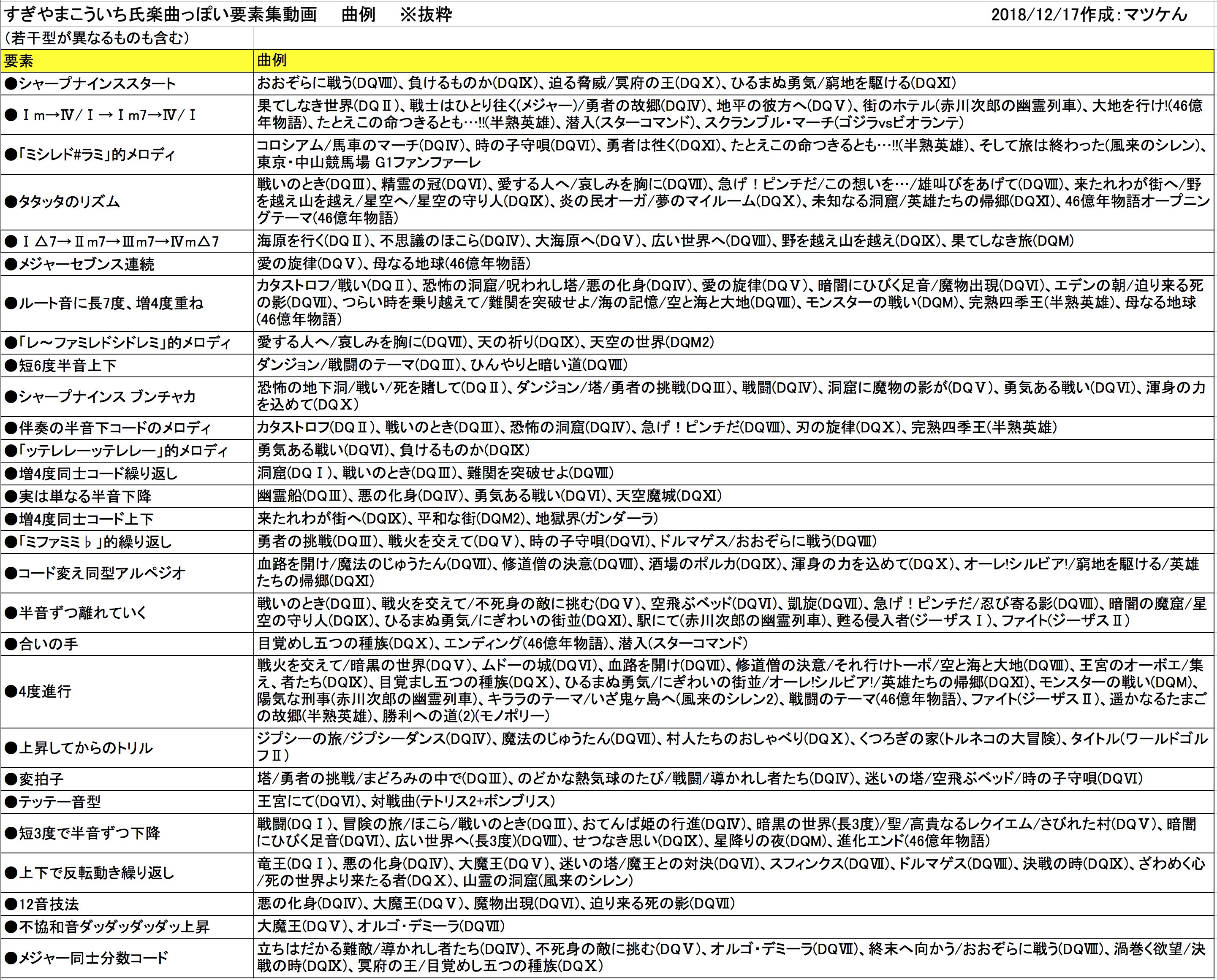 このすぎやまさんっぽい動画の各要素の既存曲例を取り急ぎまとめてみた。それぞれの曲のどの部分が該当するかを探してみると面白いかもしれません。まだまだ他にもあるかと思いますが。 https://t.co/UWItNG35Nh