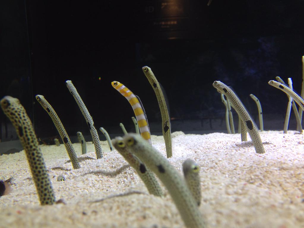 周りと自分の体の色が全然違うことに気がついたのか、とても不安そうな顔のチンアナゴ