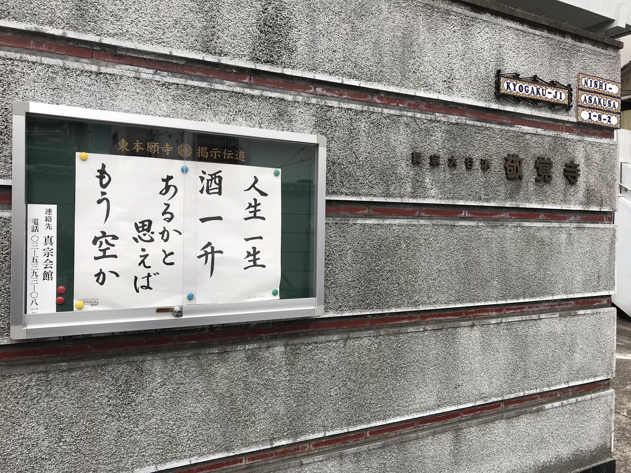 浅草をうろうろしていたら、敬覚寺の掲示板に「人生一生 酒一升 あるかと思えば もう空か」という心に刺さる言葉が(泣)。 https://t.co/l7CQhhVeca