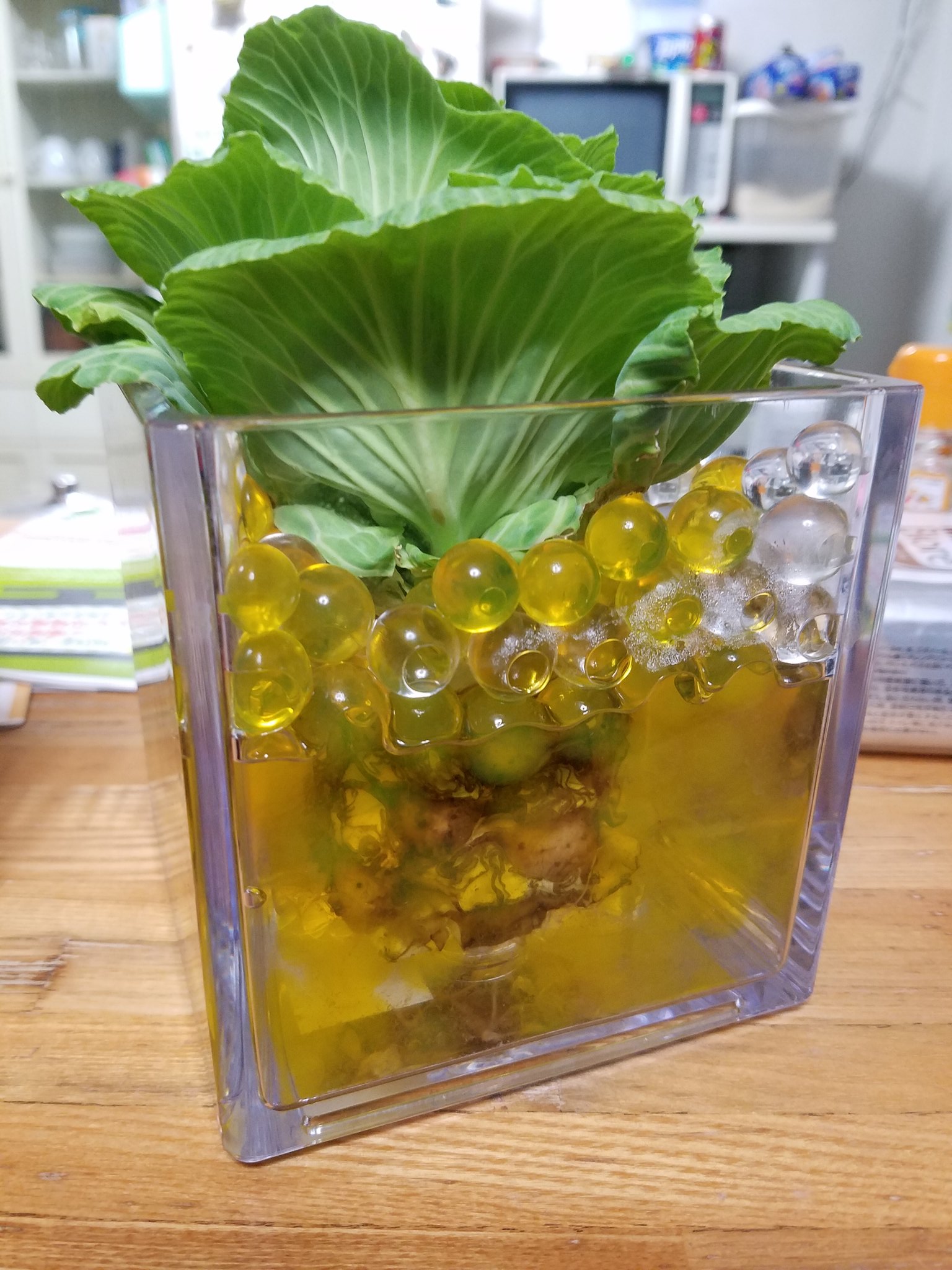 あっはっはっはっ、芯だけになったキャベツを水耕栽培したらこれだよ! https://t.co/IXpbEwKZuG