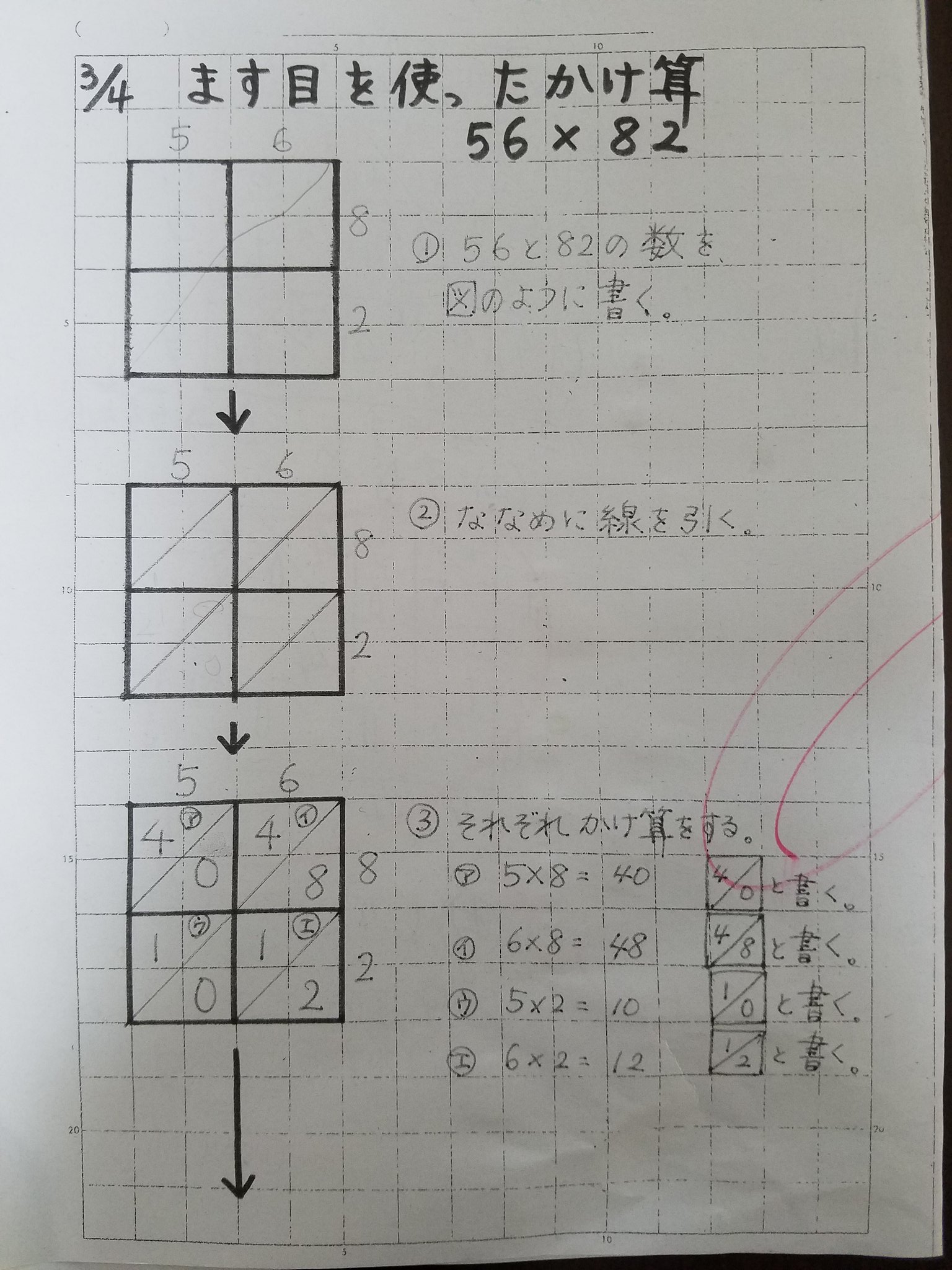 小3の息子の算数プリント、私が見たことのない計算方法で困惑してるwww