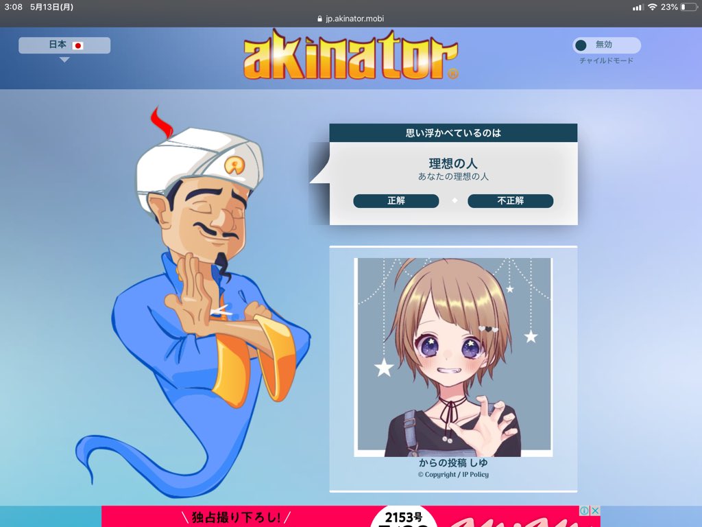 アキネーターで自分の好みの要素を答えて行ったら最高の推しキャラが見つかるのではという話になり「黒髪」「主人公より年上」「同居している」といった質問に順調に答えていったところ、でんじゃらすじーさんと表示されたので、明日Kindleで買おうとおもいます