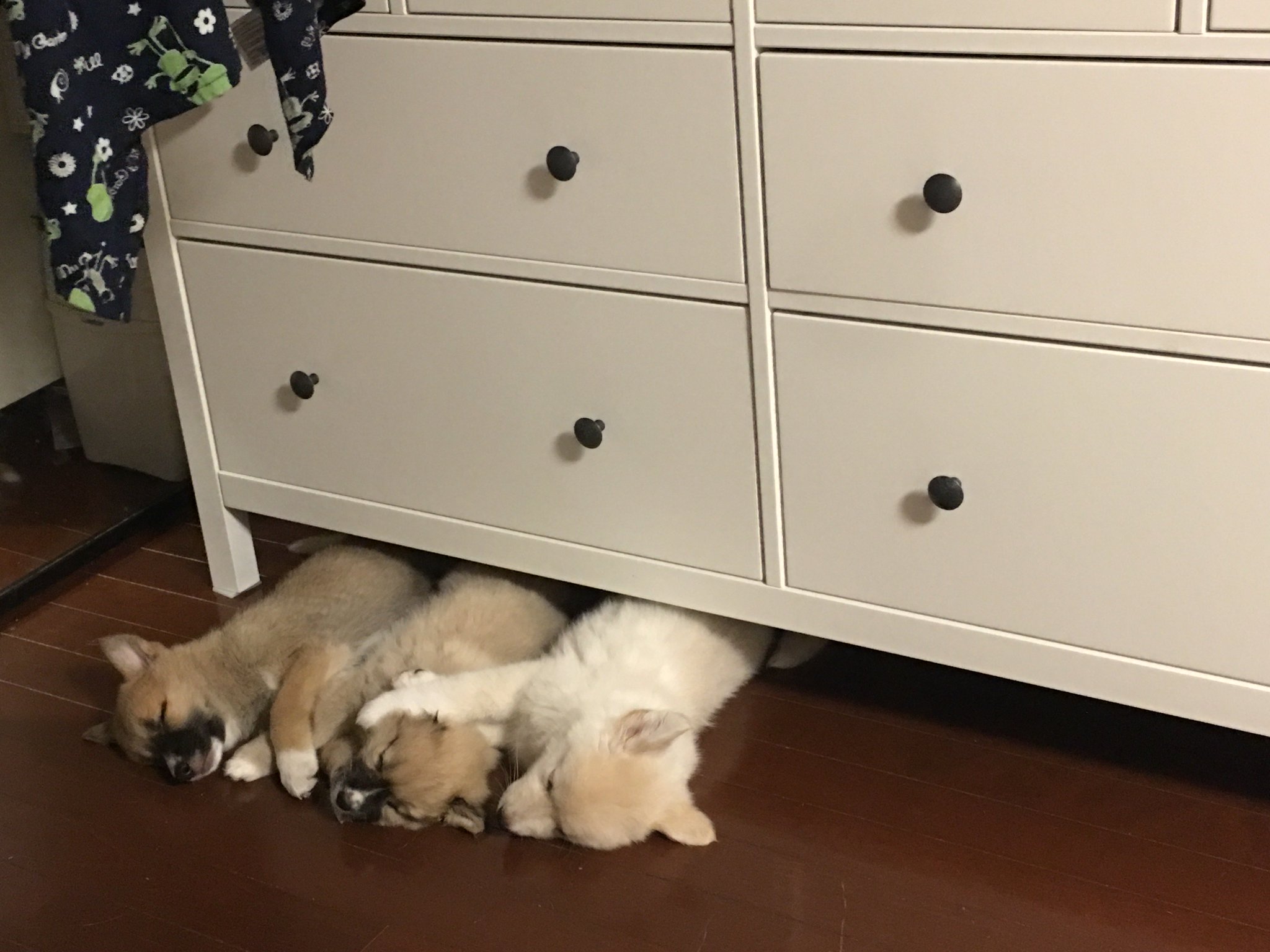 実家のタンスの下にケルベロスが寝るべロスしてたからいろんな角度で撮ったよ! https://t.co/54A3iu0vuF