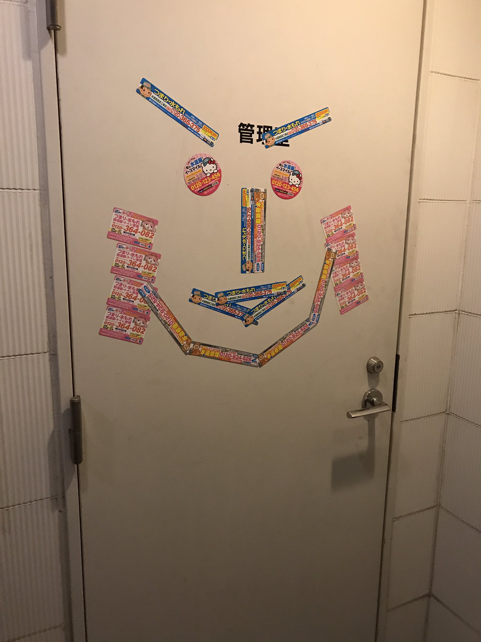 僕の住んでいるマンションでは、水道屋のマグネットが投函されるたびに、住民が一丸となって「顔」を作るという謎のイベントが始まります。笑顔で挨拶してくれるおじさん、いつも忙しそうなお姉さん、みんな「顔」作ってるくせして、そんな素振りは一切見せません。なんだろう、このマンション。 https://t.co/20NJBTZoMG