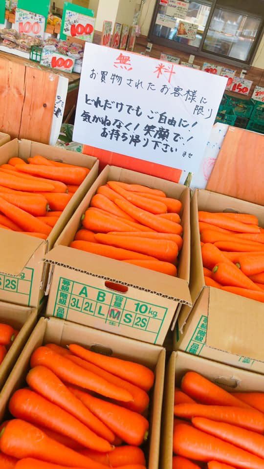 @tary_0815 @chiko__yuu 安いしニンジン買い物したら無料でどんだけもって帰ってもいいのは、いいね。無料は、ないよ。