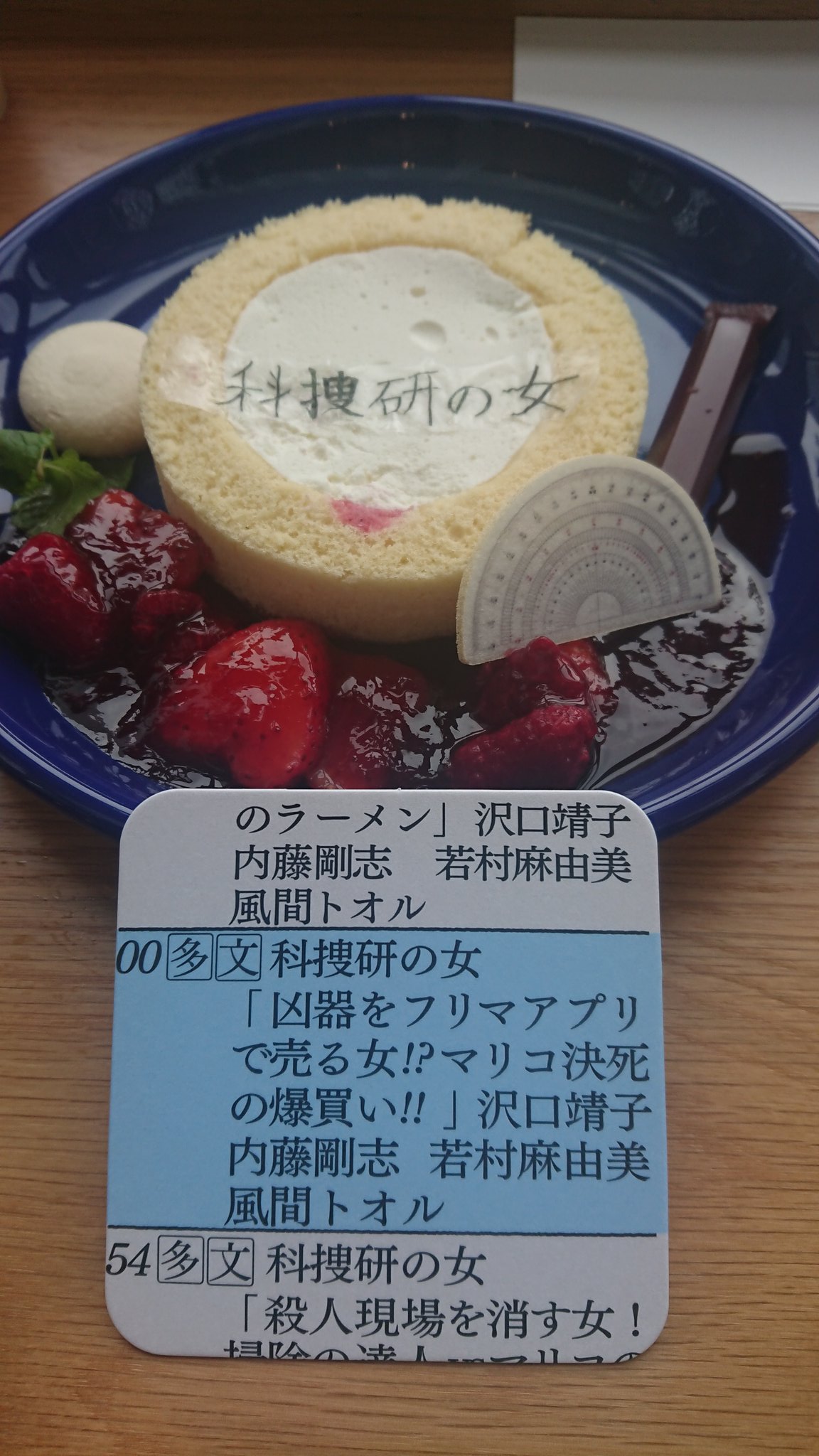 ②筆跡鑑定ケーキケーキに書かれた「科捜研の女」は一文字ずつキャストさんが書かれていて、誰が書いたかわかるカードも一緒に貰えます🙌 https://t.co/FDp3WTlyzE