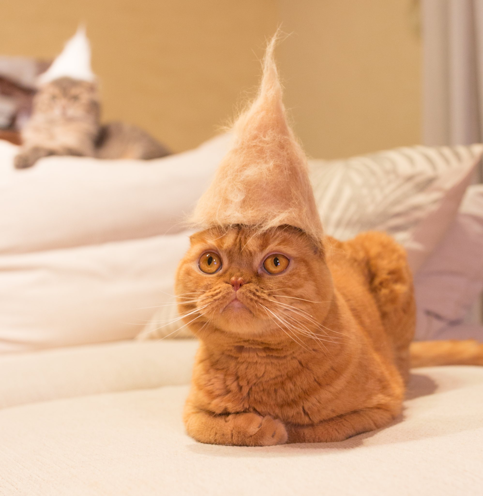 私が通ってる整体のお兄さん、硬派な感じやのに飼ってる猫の話になると溺愛話が止まらないのだけど「最近猫の抜け毛集めてて…」と話し始めて(か、変わってる…)と思ったら猫の抜け毛を再構築して猫帽子なるものを作る文化があるらしいhttps://t.co/SyFnQkRzeV https://t.co/0iQzqDiHmV