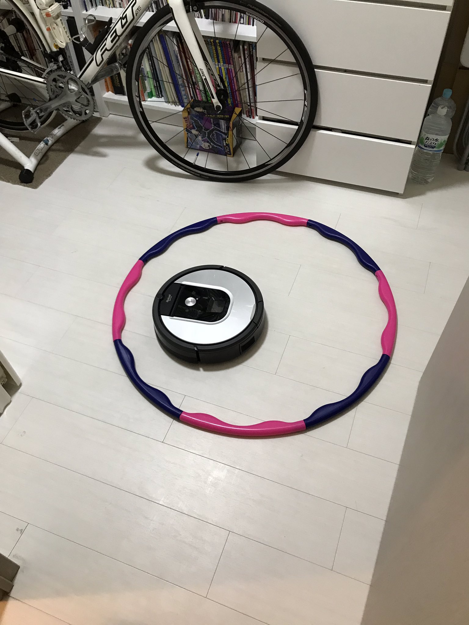 立てかけたフラフープにぶつかって、倒れてドアを超えられなくなったうえにこの中を40分間掃除し続けて、2平米掃除したと自慢してた https://t.co/ProS2fFh23