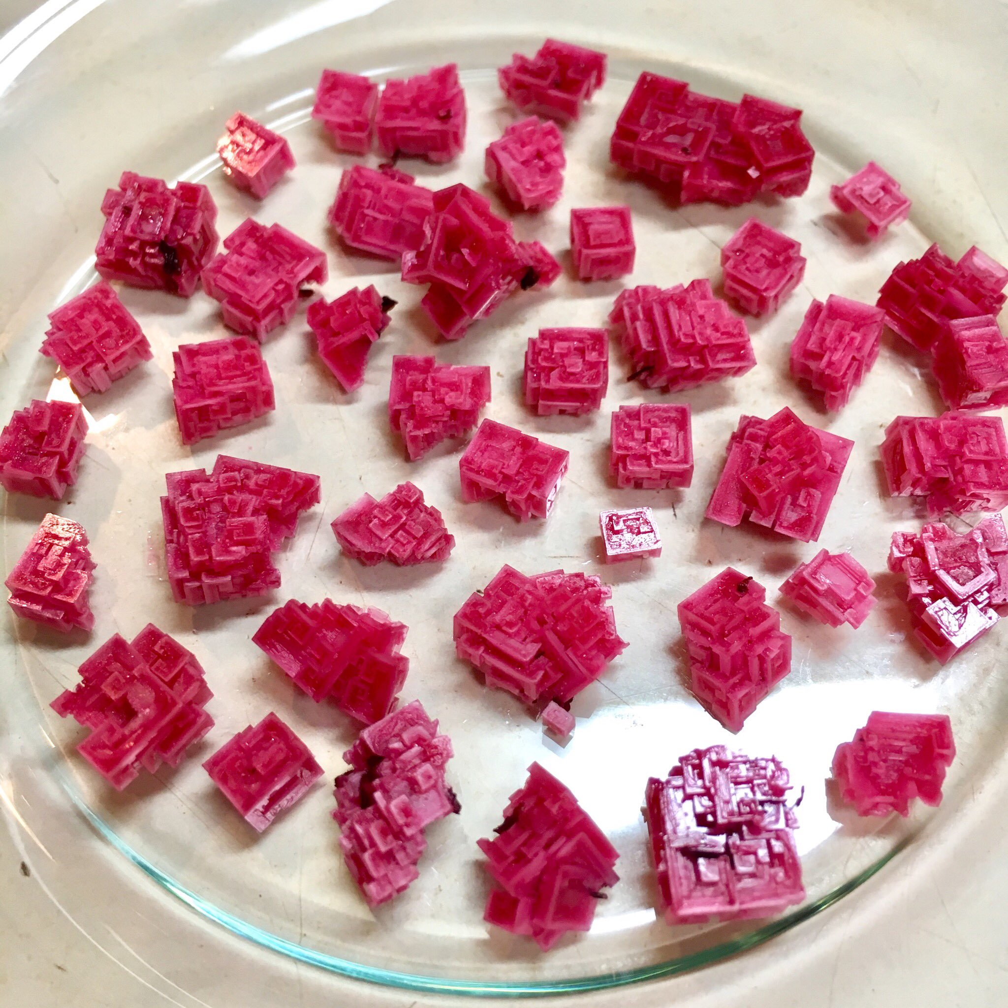 ビスマス以外でこの形になる結晶初めて見たので割と衝撃というかもしかして凄い発見というかとにかくものすごいことだと個人的に思っていますほんとすごいビスマス以外で初めて見た同じような形の結晶ほんとすごい語彙力なさ過ぎてつらいけどほんとすごい、、、