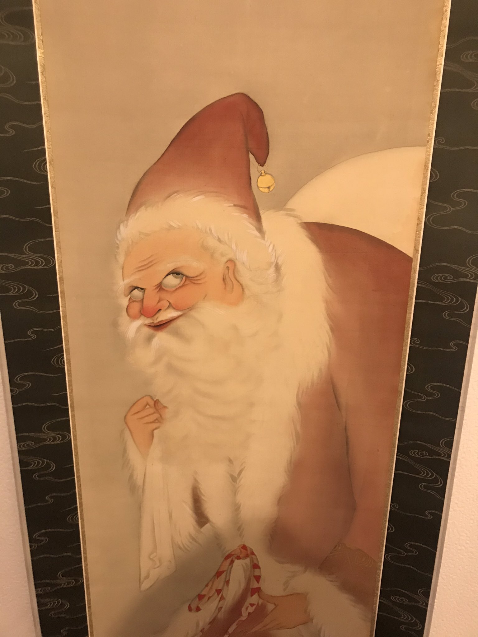 実家のお宝、80年前のサンタ掛け軸!戦時中は飾るの禁止だったそう。どてらを着てるのが特に最高❤️ https://t.co/JUKVpuUDav