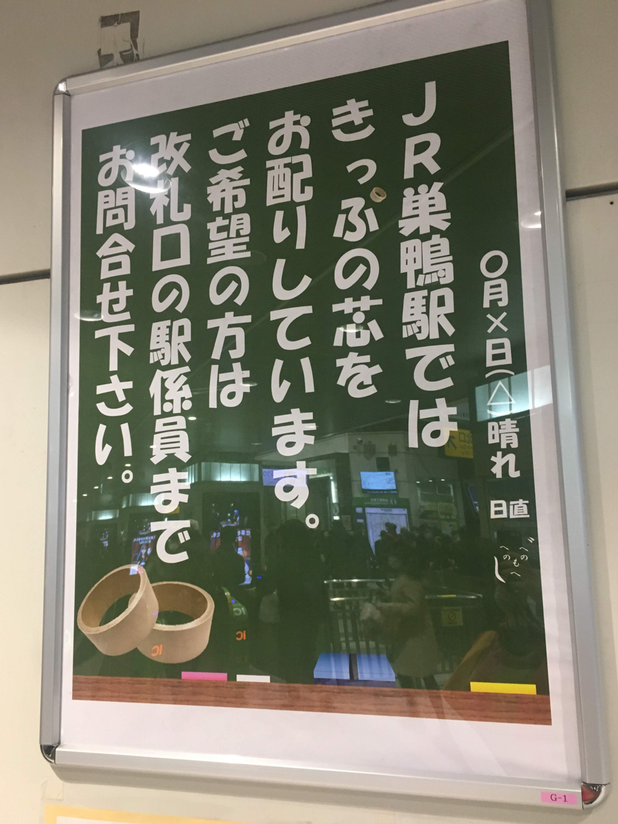 JR巣鴨駅に不思議な掲示。「切符の芯」を希望者にくれるらしい。サッパリ判らないので、貰ってみた。ガムテープの芯的な 直径14.5cmの品で、頑丈!切符の紙が巻き付いたロールが、自販機に入ってるそう。配布ニーズがあるのか駅員さんに訊いたら、判らないから配布案内出してみたんだって( ^ ^ ) https://t.co/AZVr3fti73