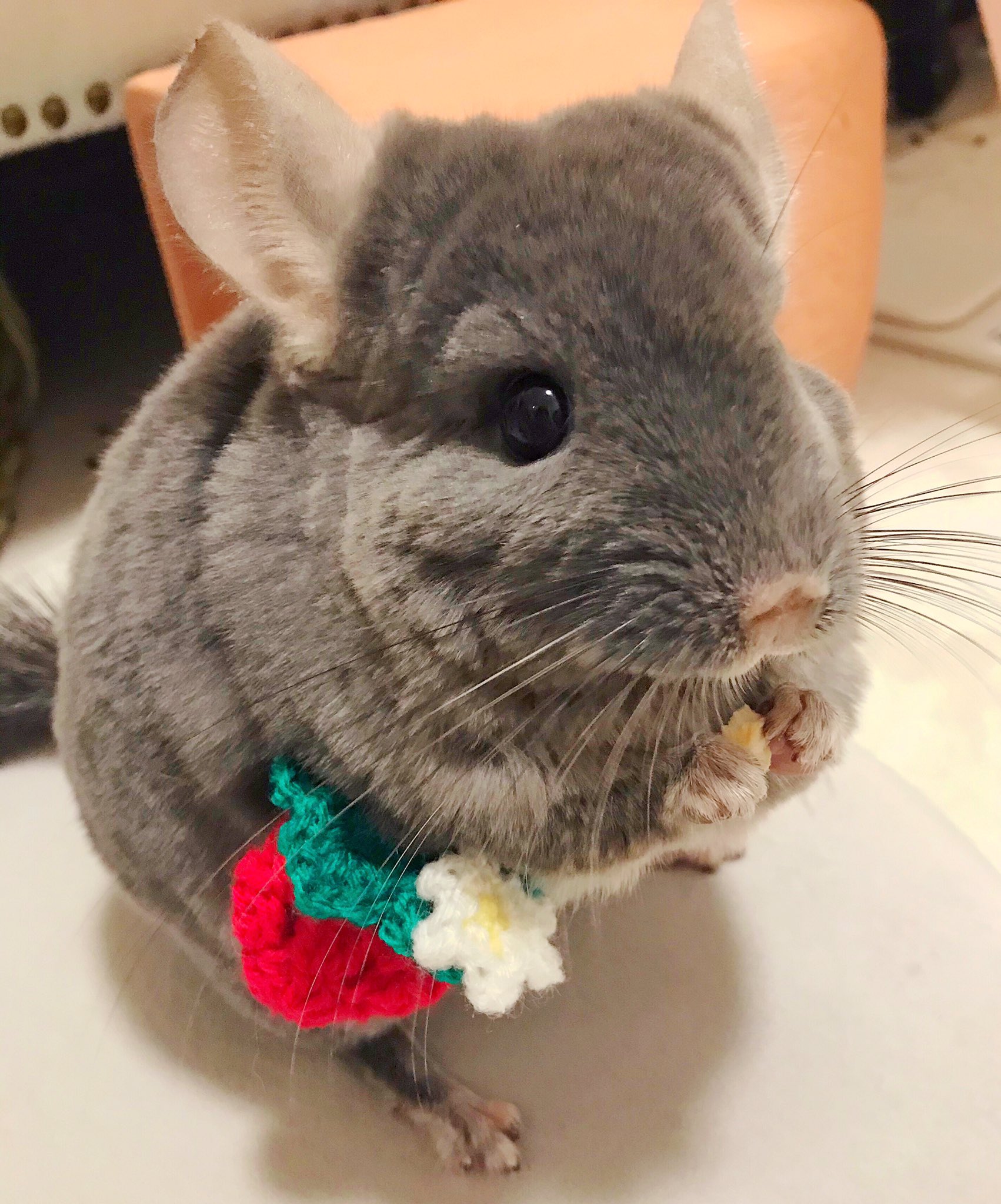 【天使】「いちごポシェット」をつけてもらったチンチラが腰砕けの可愛さ😍