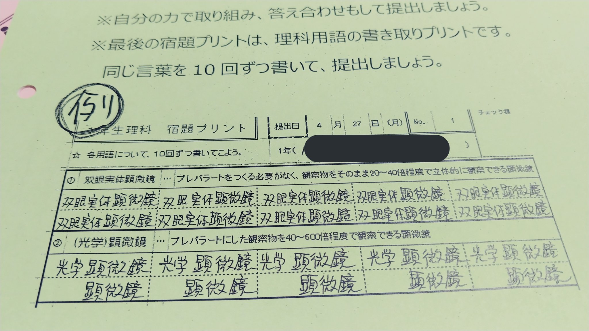 @kti_soarin 最後のプリントってあるけれど、他のプリントも同じ様な感じなんですかね?これだけならアリだと思うんだけど。だって理科用語全部ひらがなで書く子も多いから、書いて覚えて欲しい教師の気持ちもわかるんだよね。まぁ勉強方としては愚策ではあるけども。