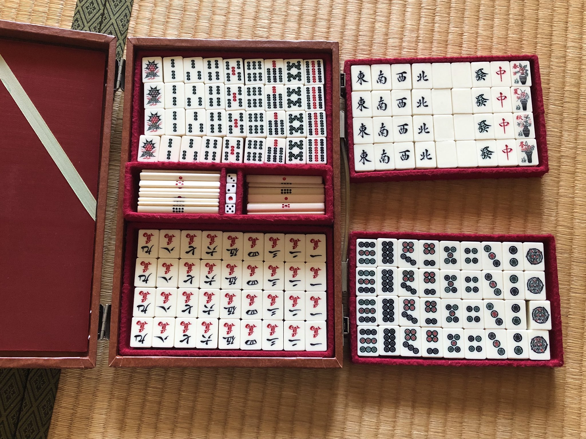 何件か来てたので回答します祖父母が若い頃に買ったものらしいので赤いのがないのはそのためだと思いますほぼ黄ばんでないので象牙ではないと思います裏は本物の竹だと思います祖父母は買ったきりほぼ触ってないらしいので状態はいいです素人なので詳しくはわかりませんし間違いもあると思いま https://t.co/9DcUzUr5Qe