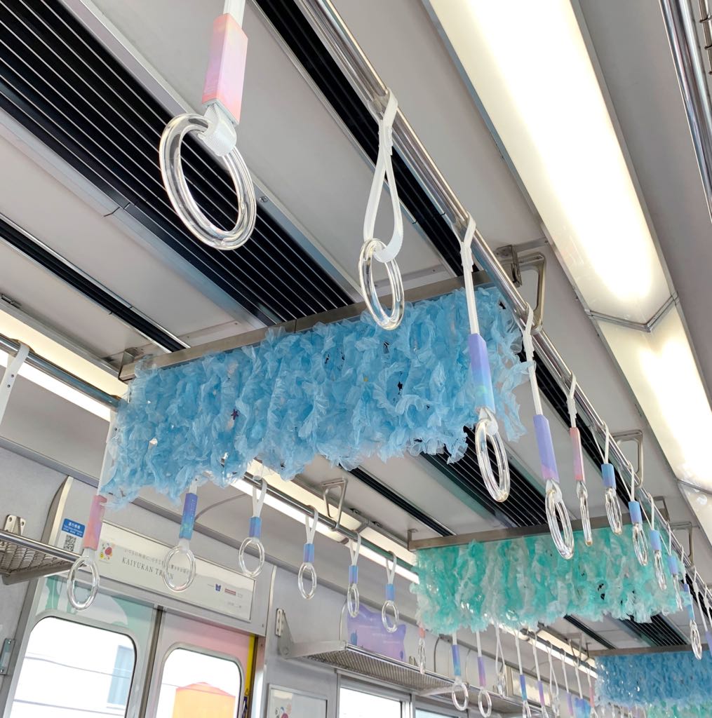 久しぶりに電車に乗ったんやけど海遊館のラッピング電車、外観はもちろんのこと中なにこれなんなん!?海の中ーーー!吊革がシャーベットカラー!中吊りがフリル!しかも車両ごとに色違い!ニ…ニモがいるー!かわいいかわいいかわいいマスクの下で大興奮してる。🐟🐠🐙 https://t.co/nXBqSJMwrg