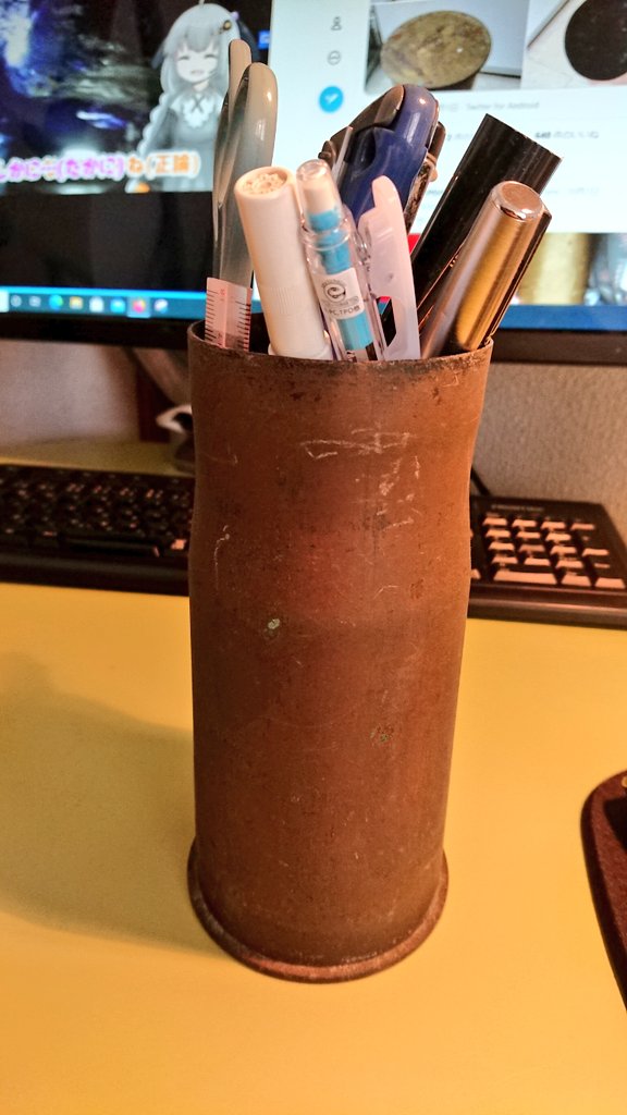 !?このツイート見て気付いたけど、昔からなんとなく使ってるペン立て、薬莢だった。 https://t.co/k7p4ixwHzH https://t.co/EEEgwefIJq