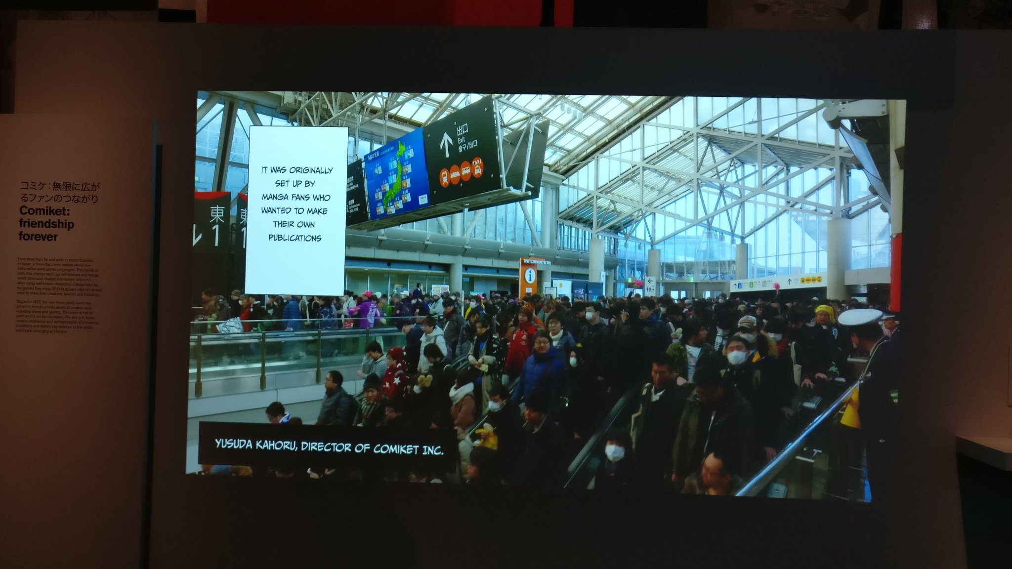 伸びてるので展示内の写真を貼っておこう 日本の漫画を知らない人向けの解説や紹介は日本人から見ると新鮮で面白かったコミケの映像(4枚目)が流れていて、コミケについてあまり知らない私も勉強になった https://t.co/5ffZLuFKkT