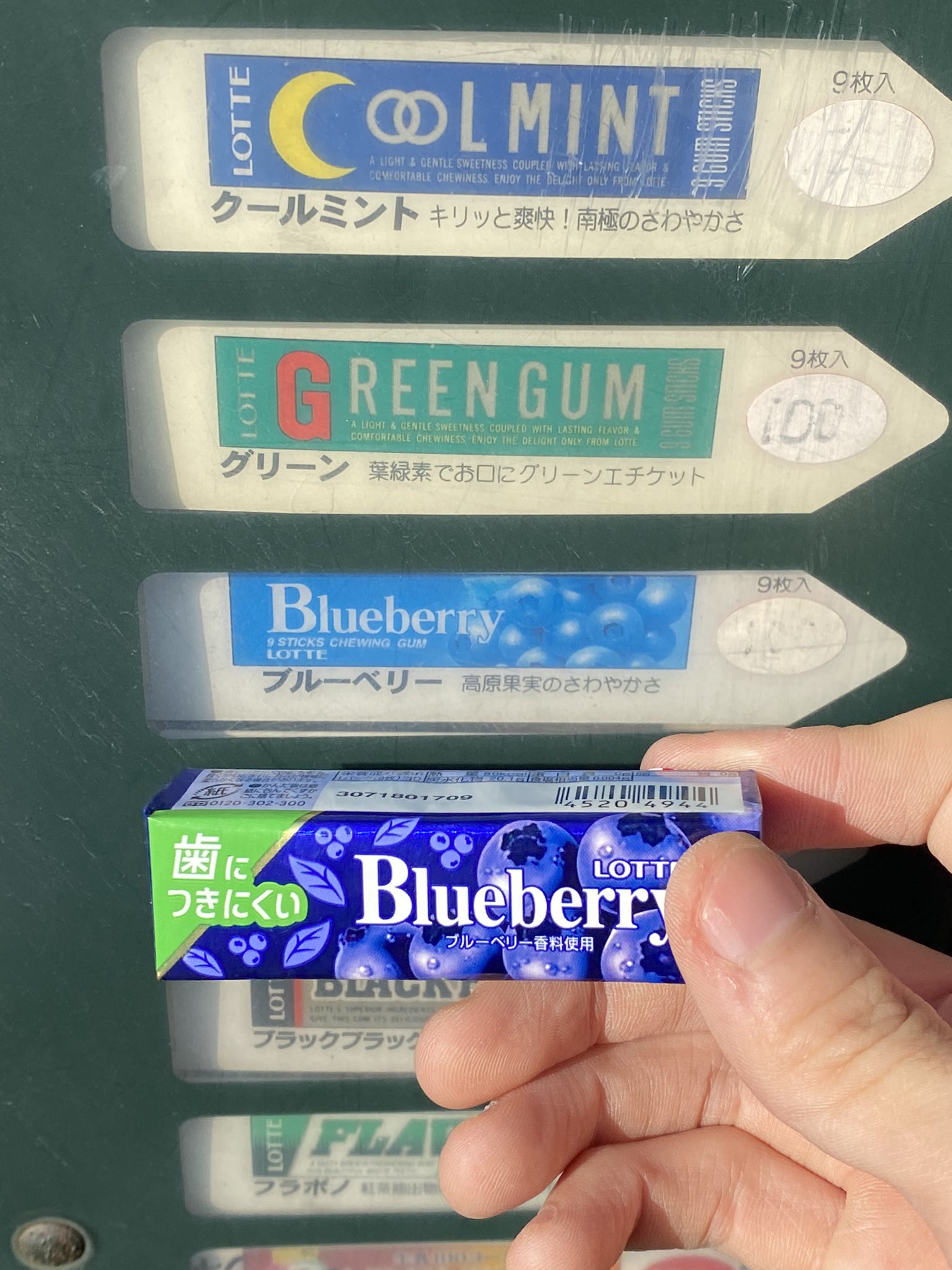 ちなみに買ったのはブルーベリーガム。パッケージは新しめなので中身の更新はされていたらしい。ちなみに上6つ以外は売り切れていた。 https://t.co/hGgvE4Iobt