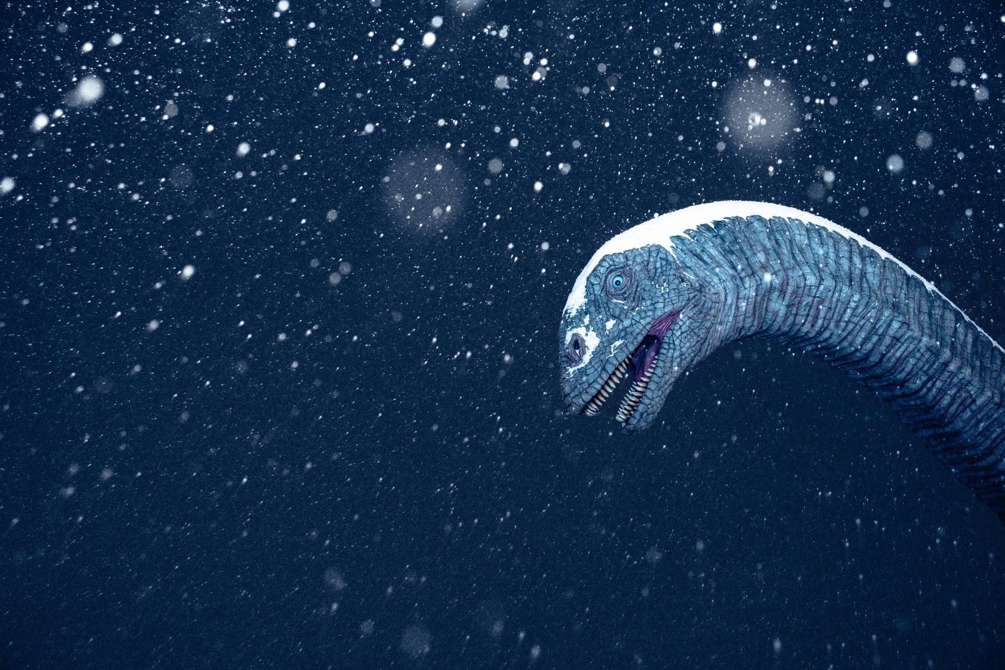 @photono_gen 「こうして、恐竜は雪の中に滅びてしまったのだ。」 The end