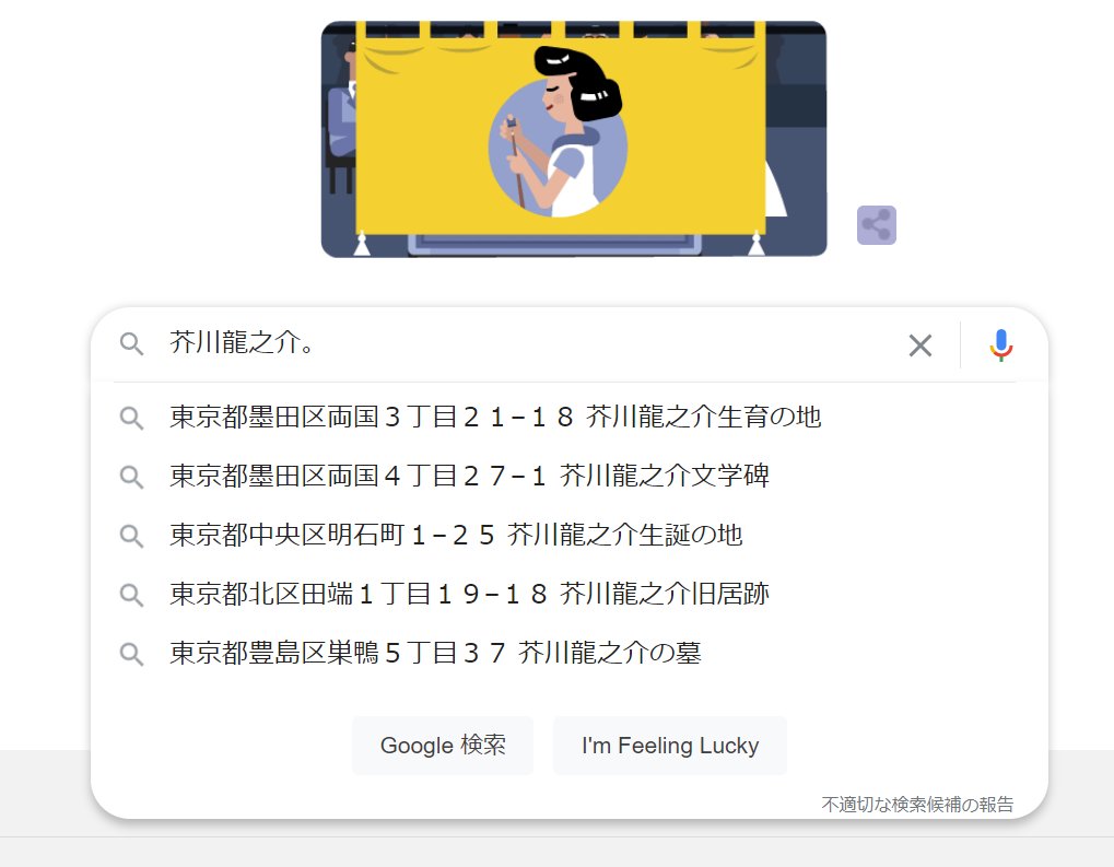 歴史的人名という訳ではなく、建物名、店舗名や人名など住所データで持っているものに部分一致すればリストアップされているので「田中。」なんかでも反応します。なお現在地に近いところから優先して出る傾向があるかなと。 https://t.co/NM4lmWybOJ