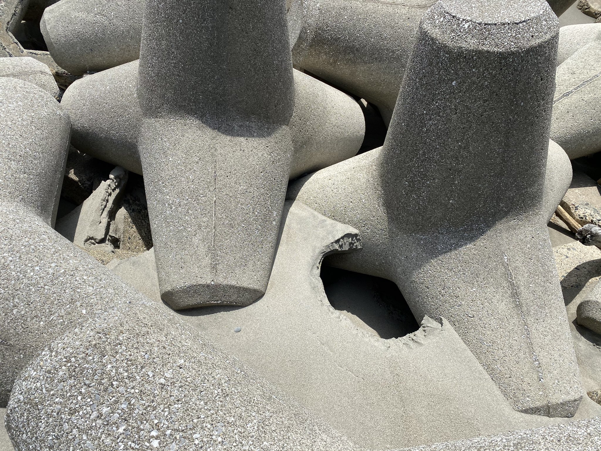 テトラポットのスキマの砂地歩いてたら天然の落とし穴にハマったクソ危ないから歩かない方がいいよ https://t.co/ZUyRjrcD28