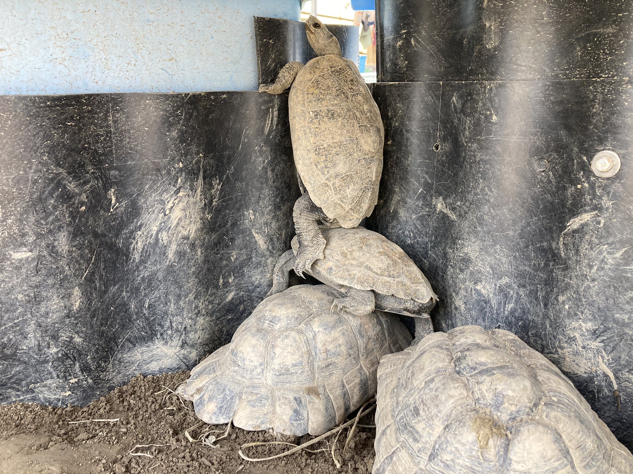 @wazouki @ZEXT933 亀って日向ぼっこしてる時以外は常に身を隠せる場所を探して移動するのと、そのまま後ろにバック出来ない体の構造のせいで、箱型の部屋で飼育すると勝手に隅っこへいっちゃうんだよね複数飼いだとそれが重なって結果として脱走してしまうという・・・