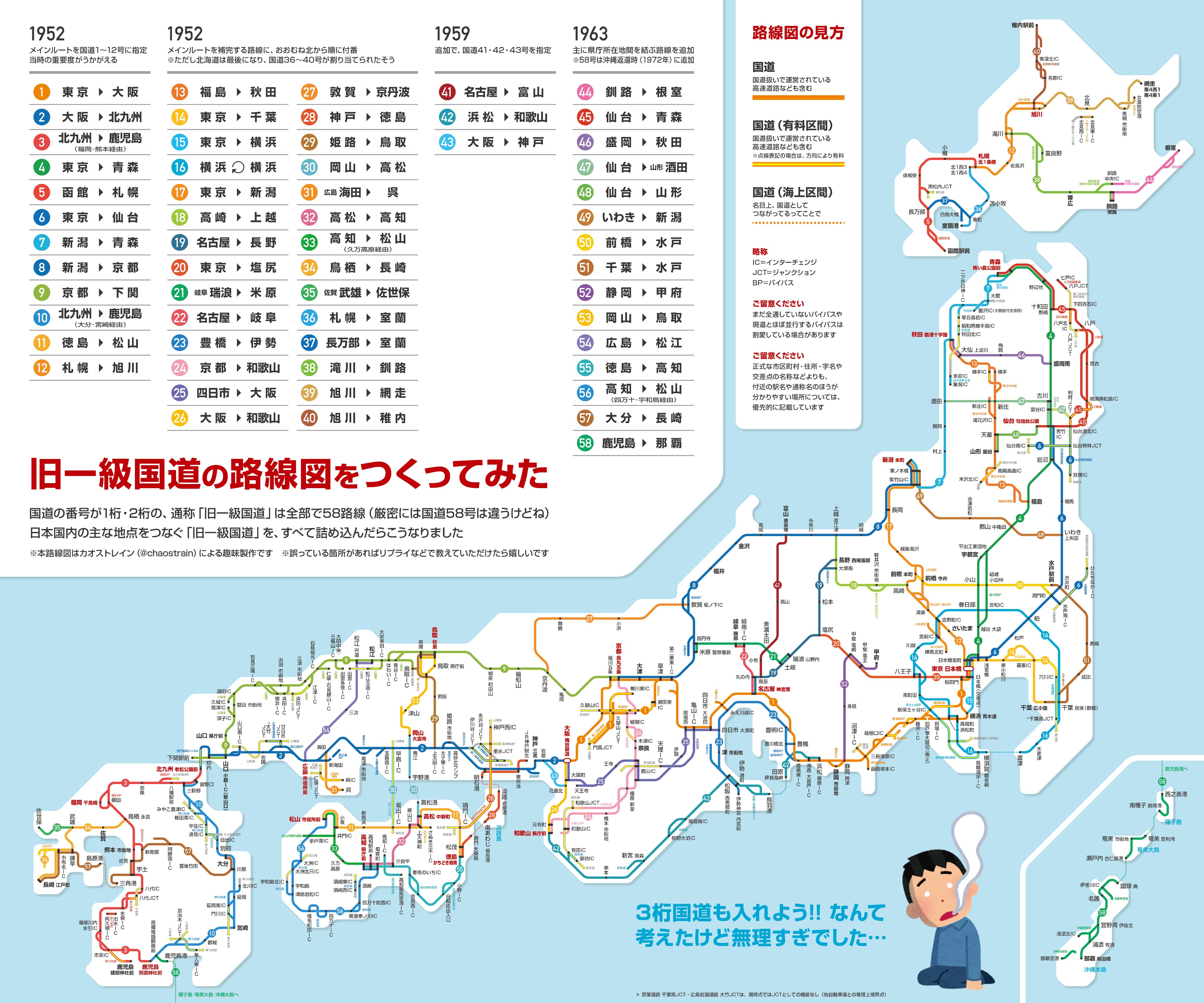軽い気持ちで旧一級国道(番号が1桁・2桁の国道)の路線図をつくり始めたらズブズブと沼にはまり、予想外にカオスなものができた… https://t.co/5cmXgQkLOw