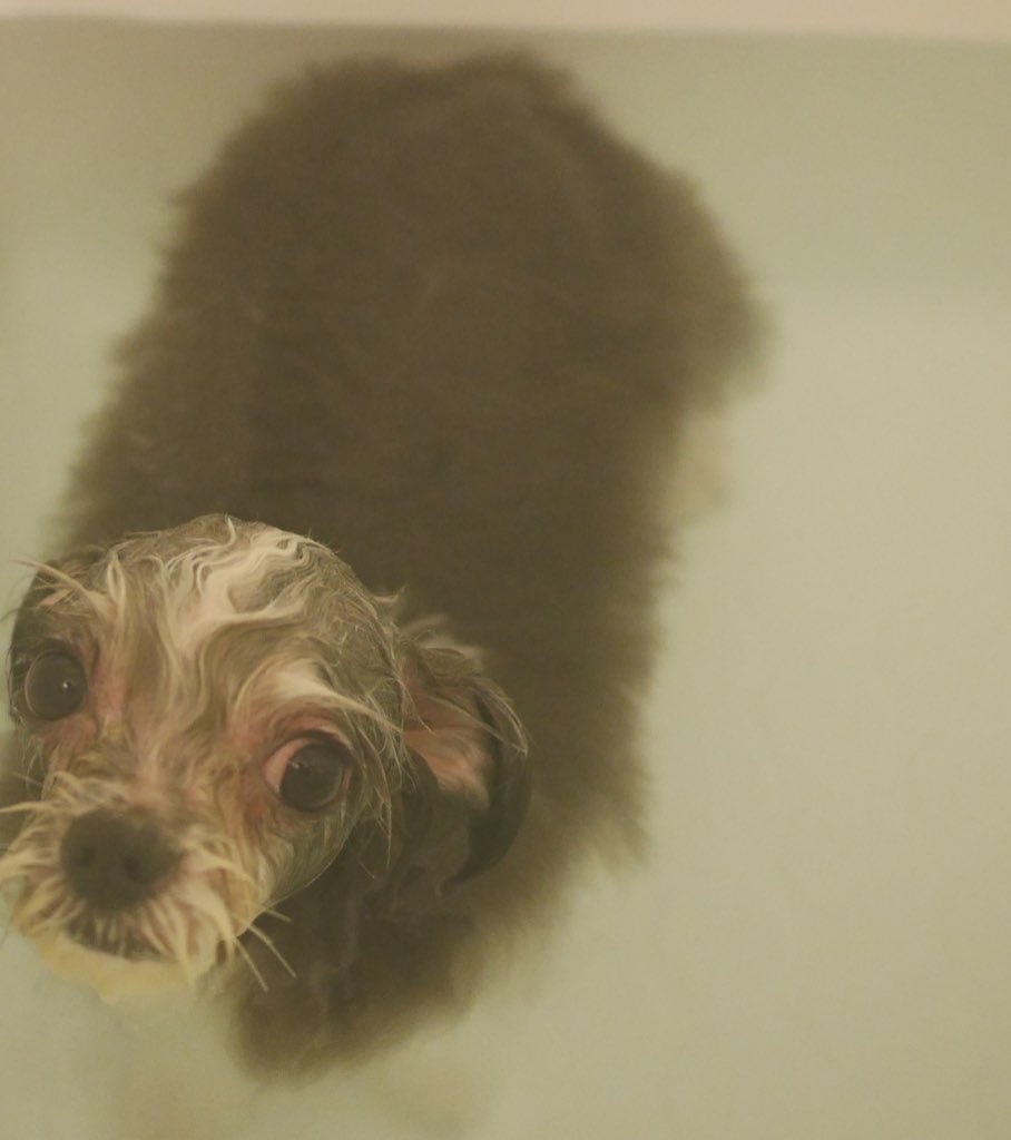とろろ昆布みたいと言われたうちの犬のお風呂姿 https://t.co/LIvq5zWbtm