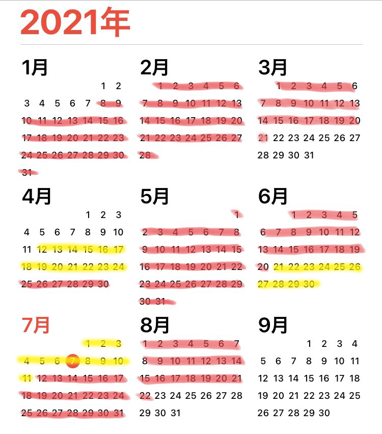 【茶番】2021年、東京に緊急事態宣言が出された期間をカレンダーに“見える化”してみた結果…😨
