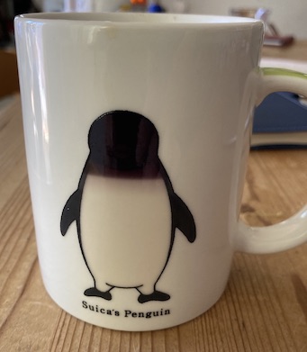熱い飲み物を注ぐとあっちを向いて立っているスイカペンギンがこっちを向く、というマグカップを使っていますが、実際にコーヒーを注ぐとこうなりますね……。 https://t.co/5ZgoYCYiQH