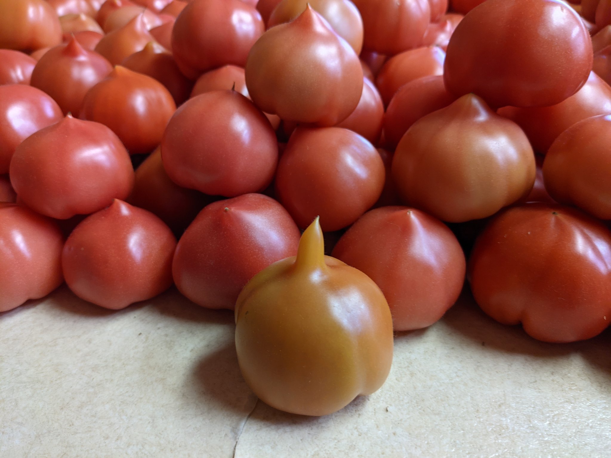 近年まれにみるハート型トマトがとれたので見てください。 https://t.co/hzBs6hb93a