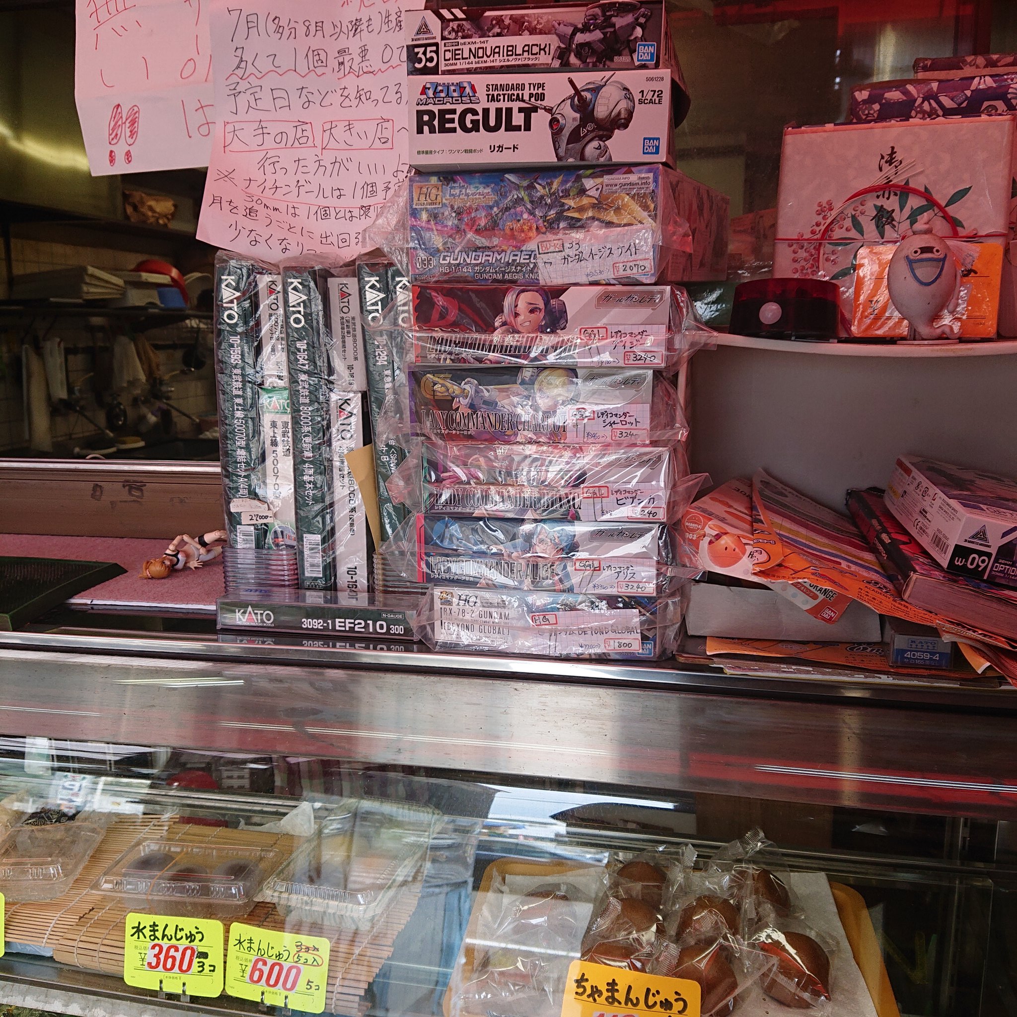 嘘みたいだろ?団子屋でガンプラ売ってるんだぜ✨おばちゃんが、「ナイチンゲール、売り切れちゃったのよ~ごめんねぇ。その箱のは組み立ててディスプレイしちゃったの~」とのことw所狭しと並ぶガンプラ結構掘り出し物有るかもw因みに団子買ったw https://t.co/V1zbo2ngAR