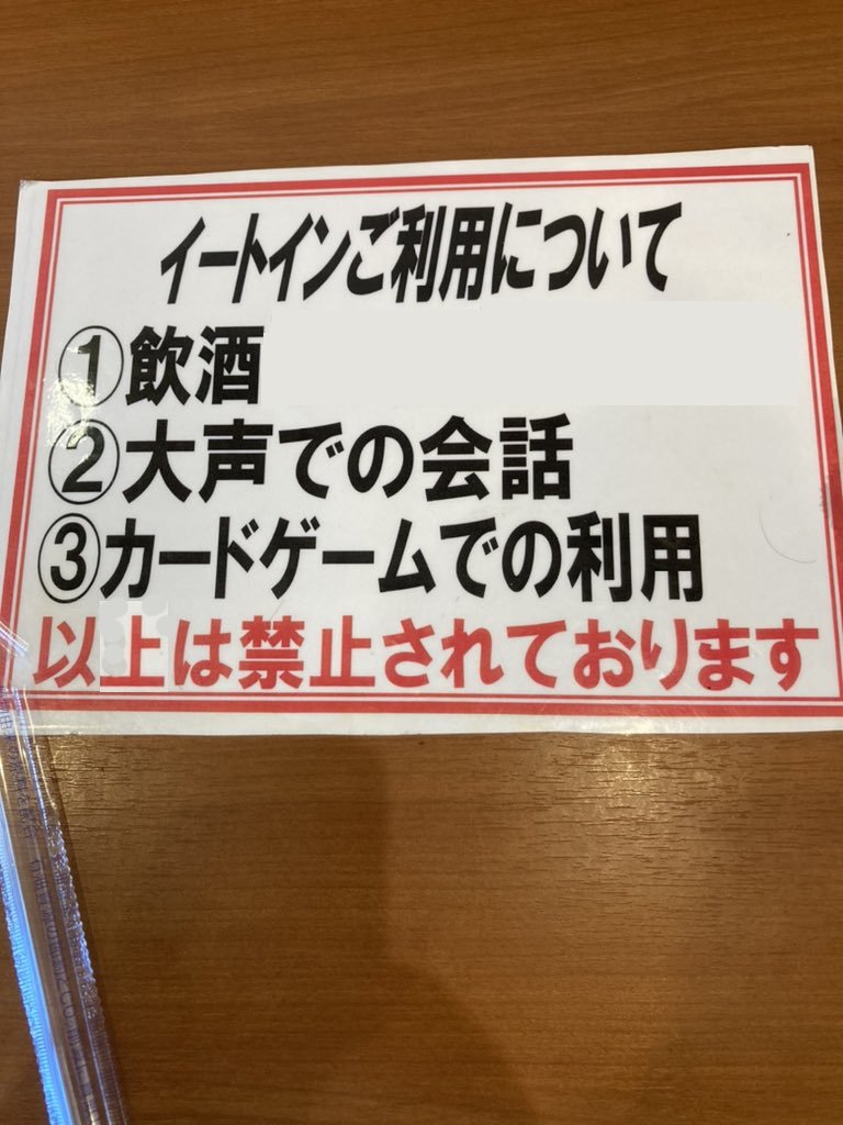 @goodwordsomehow 正しくは、イートインご利用について①飲酒②大声での会話③カードゲームでの利用以上は禁止されておりますですね