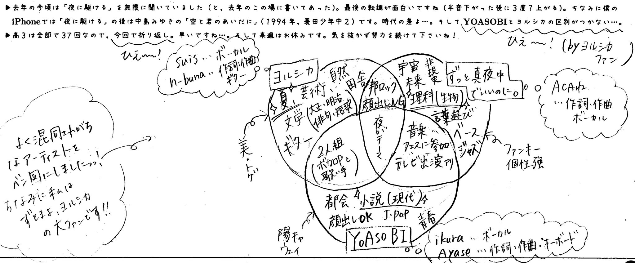 今日の授業で「YOASOBIとヨルシカの区別がつかない」って言ったら,生徒に怒りのベン図をもらいました。 https://t.co/e0mTueXjbg