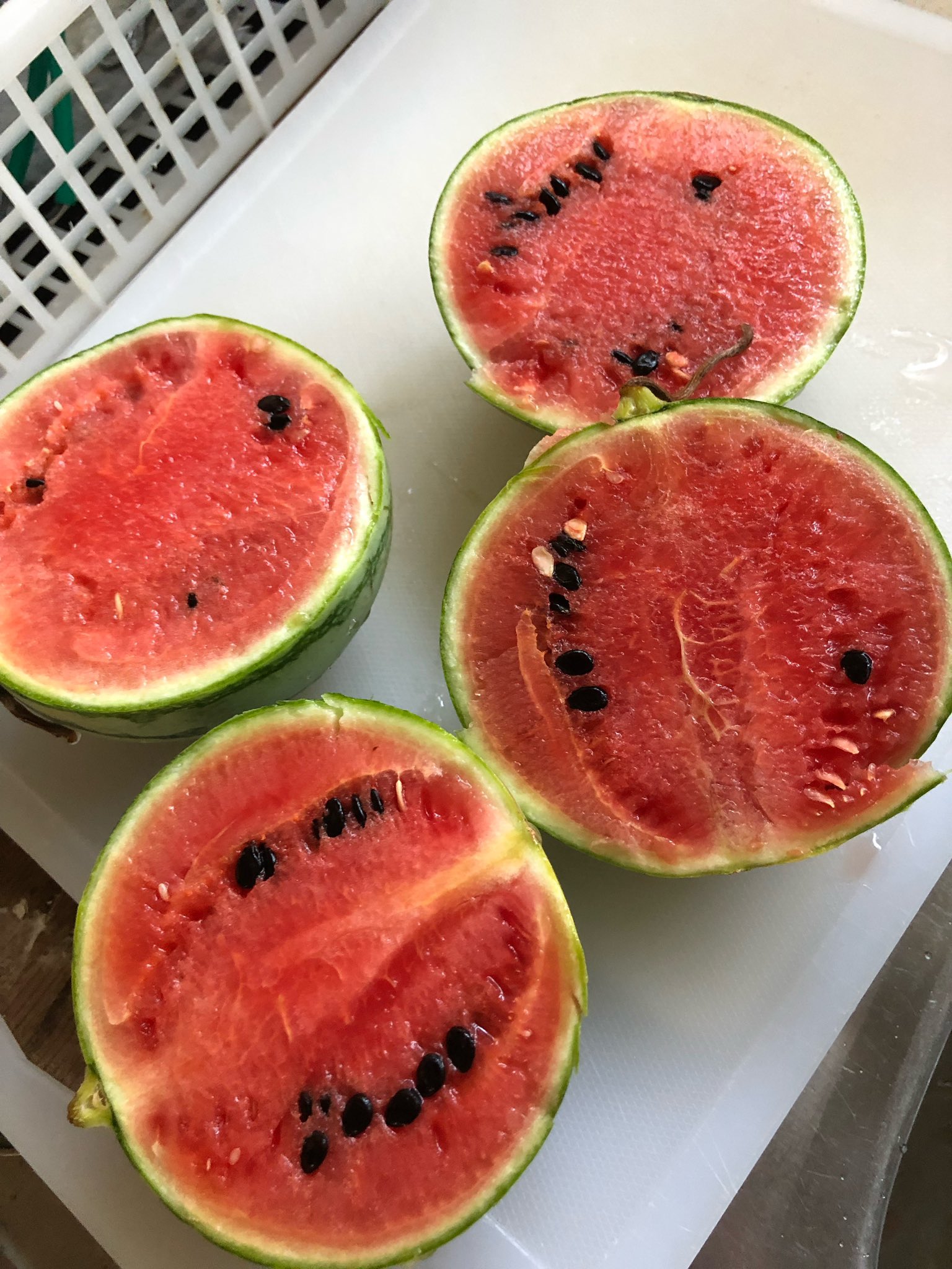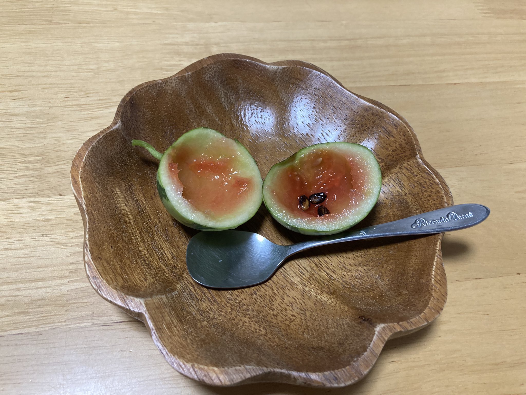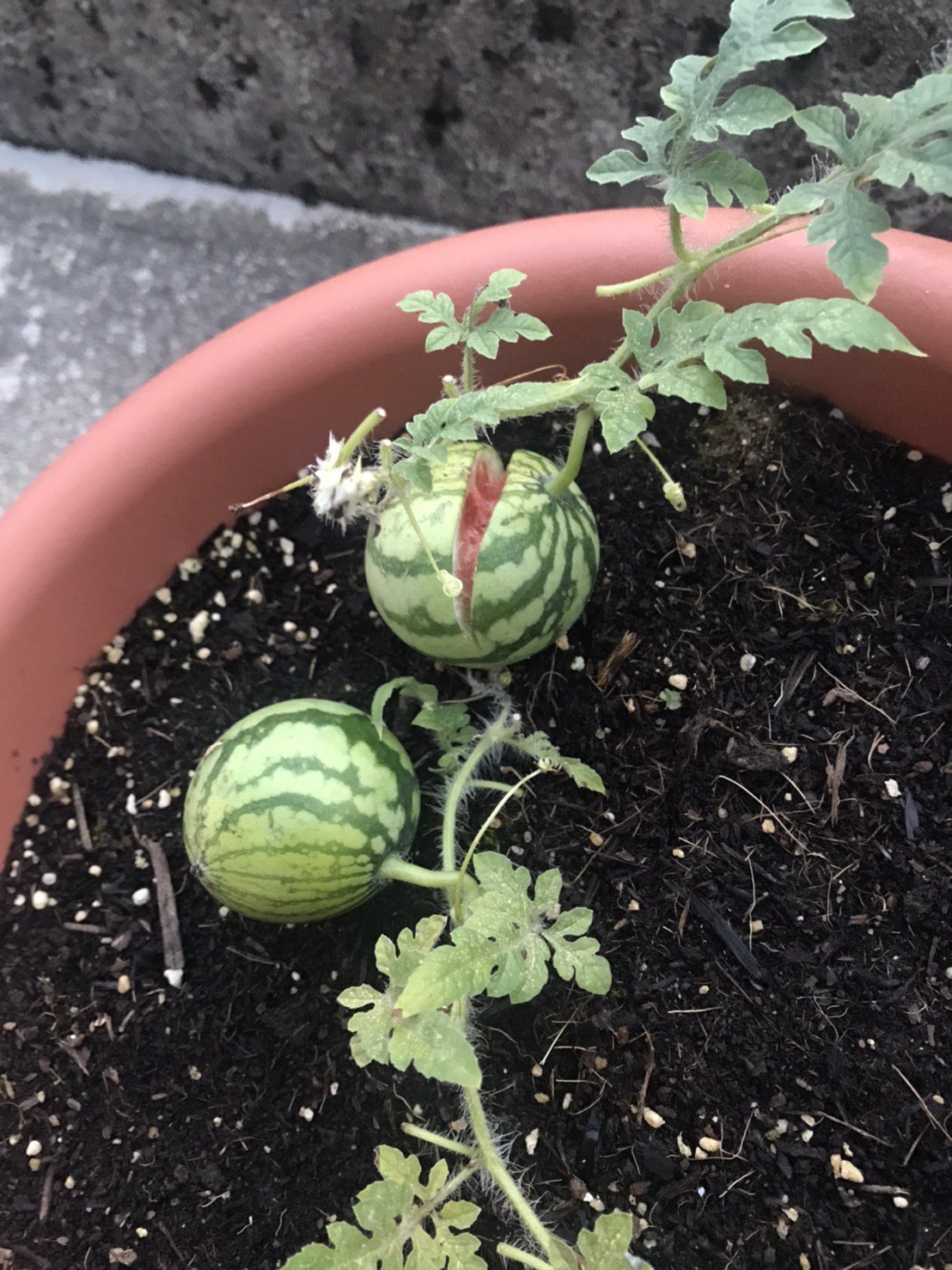 食べたスイカの種を発芽させて、ここまで来たけど、身が割れてしまったので収穫。直径は5センチ弱。味はしっかり甘くて美味しかった👍そして種までちゃんとあることに感動。また、来年やってみよう。 https://t.co/kGmtVfEWEZ