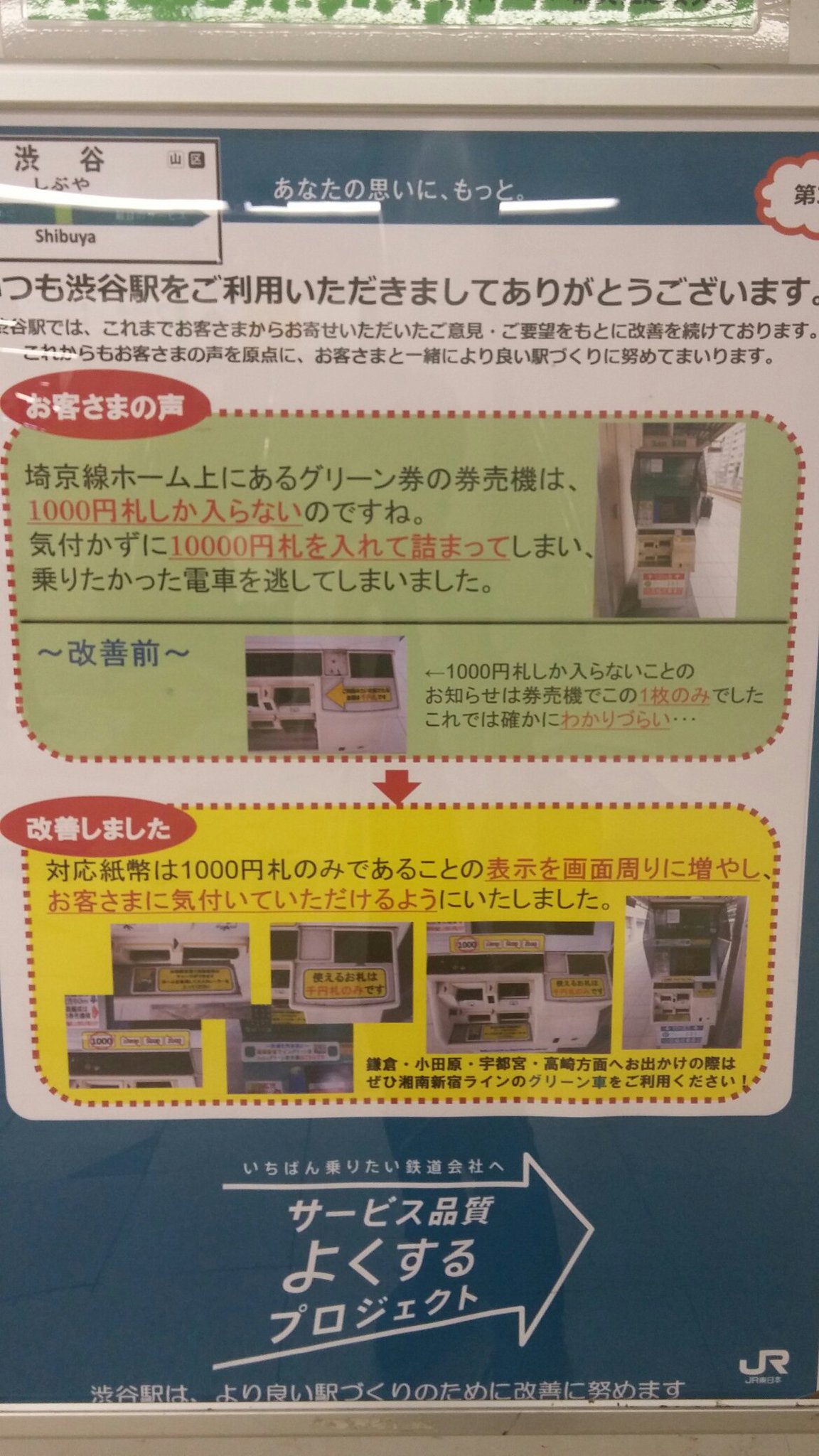こうして世の機械にはダサい注意書きが増えていく… 2016/6/29 19:00 画像 スポンサードリンク [投稿元ツイート:ところてんさん] 万札対応してない券売機に千円入れたら吐き出されるのが正解で、詰まるのは完全なる「故障」。それを客に転嫁するのはアカンかと。もし詰まるのが仕様だったら全国で同じ問題が起きてるはずなんですけどね。「元々お知らせは一枚貼ってあるんですけど」と皮肉っぽい書き方してるのもなんだか狭小。