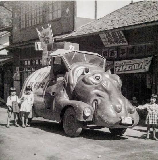 【驚愕】戦後間もなく開業した『カバヤ食品』が当時宣伝に使用していた車が怖すぎるwww